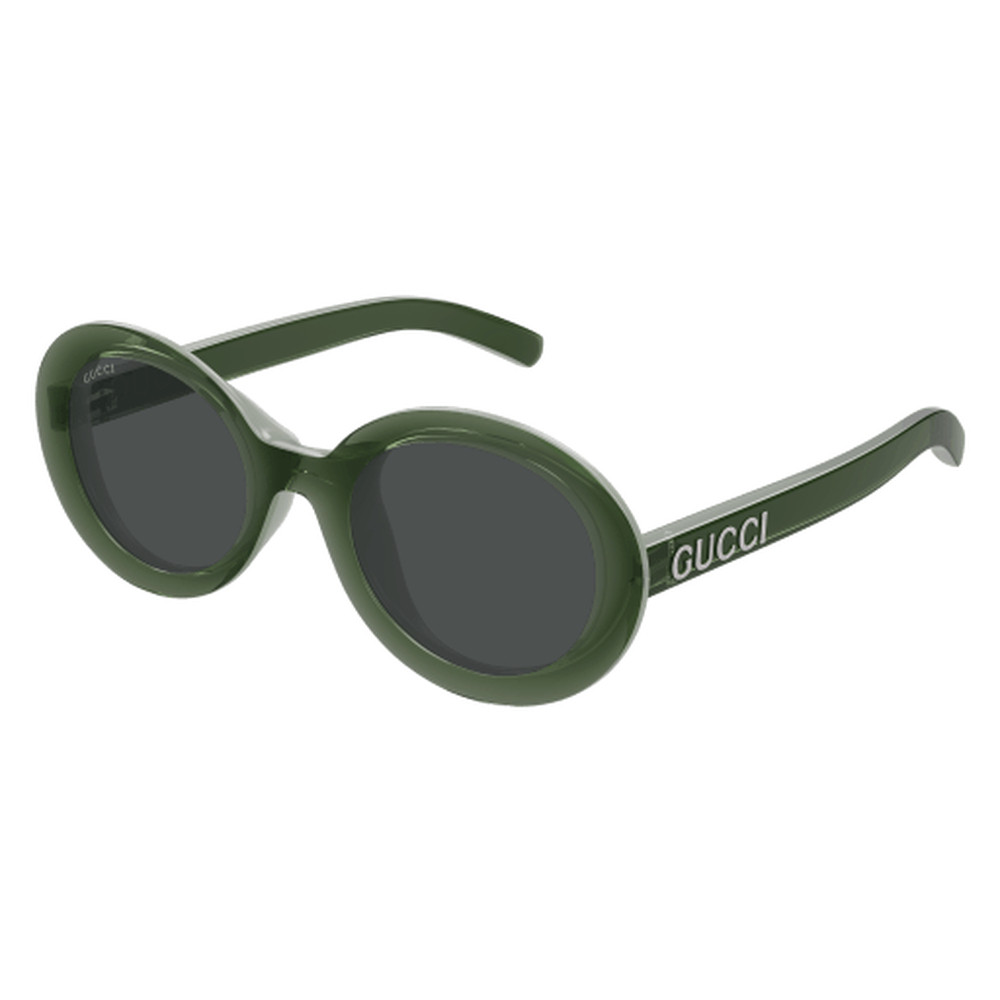 Plastiques brillants et colorés avec spoiler visible. Forme ovale. Logo Gucci embossé et verni sur les branches. Une palette de couleurs vibrantes, rehaussée de couleurs contrastées, rehausse le caractère unique du cadre.