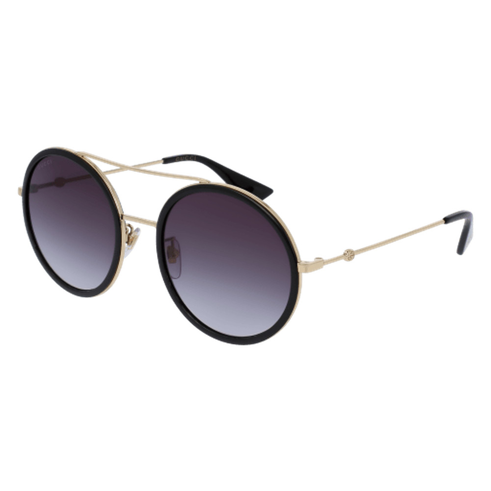 Icône des lunettes Gucci depuis son lancement, ce modèle se réinvente avec un style inédit et audacieux : des verres et une monture aux tons transparents et dégradés pour une allure féminine. De petits GG entrelacés sont soudés sur les branches, tandis qu'une abeille estampée à chaud orne leurs extrémités. Disponible en vert/bordeaux et bleu/bordeaux, évoquant l'effet Web et Sylvie.