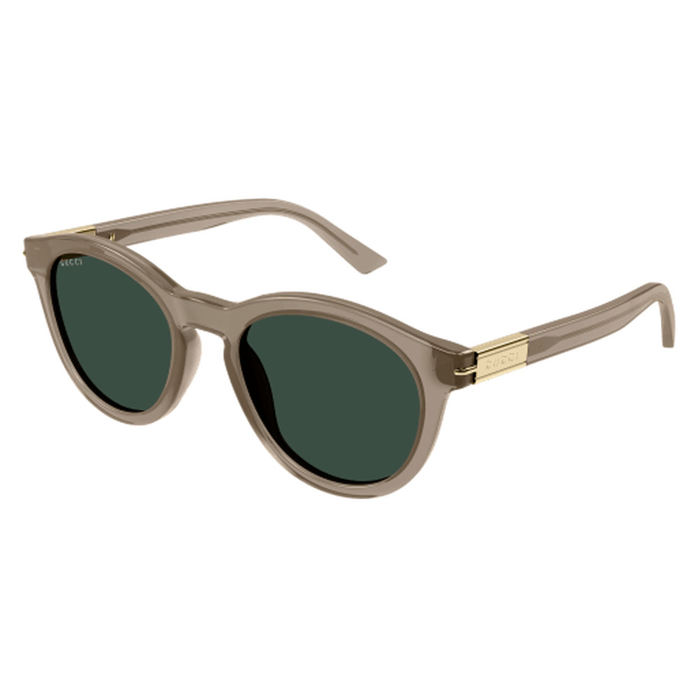 Concept facile à utiliser, la ligne GG brille par sa simplicité grâce à une construction simple et élégante, ornée d'un détail métallique sur la branche. Forme arrondie en acétate avec insert en métal. Logo Gucci sur les branches, rehaussé par un détail métallique dans le coin. Palette masculine sombre contrastant avec les détails métalliques et combinée avec des verres foncés lisses.