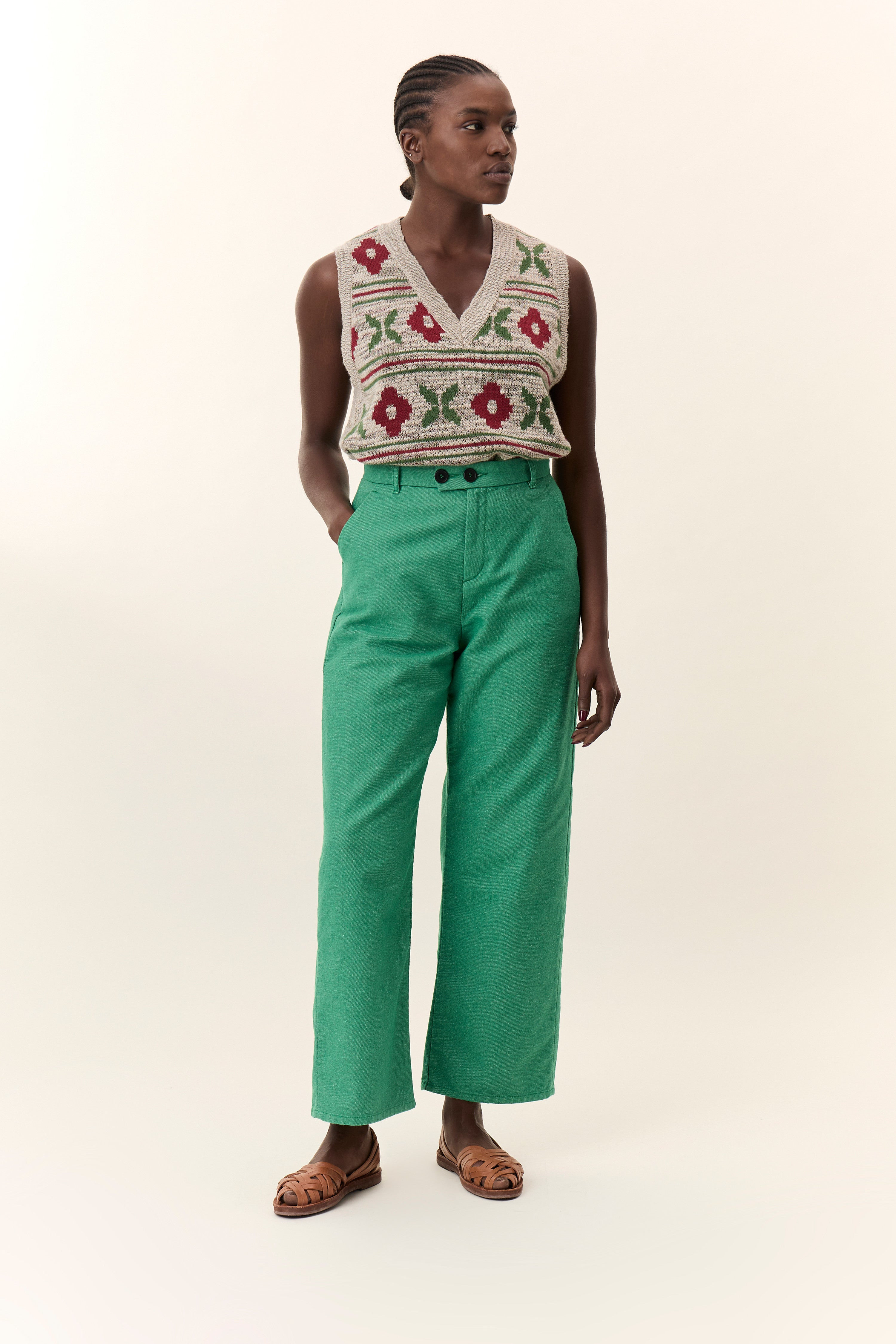 Doté d'une coupe flare élégante et d'une taille haute flatteuse, le jean Philo Plain structure et élance la silhouette de la femme Leon & Harper avec finesse. Véritable incontournable du dressing, il incarne un style rétro intemporel et une féminité affirmée.