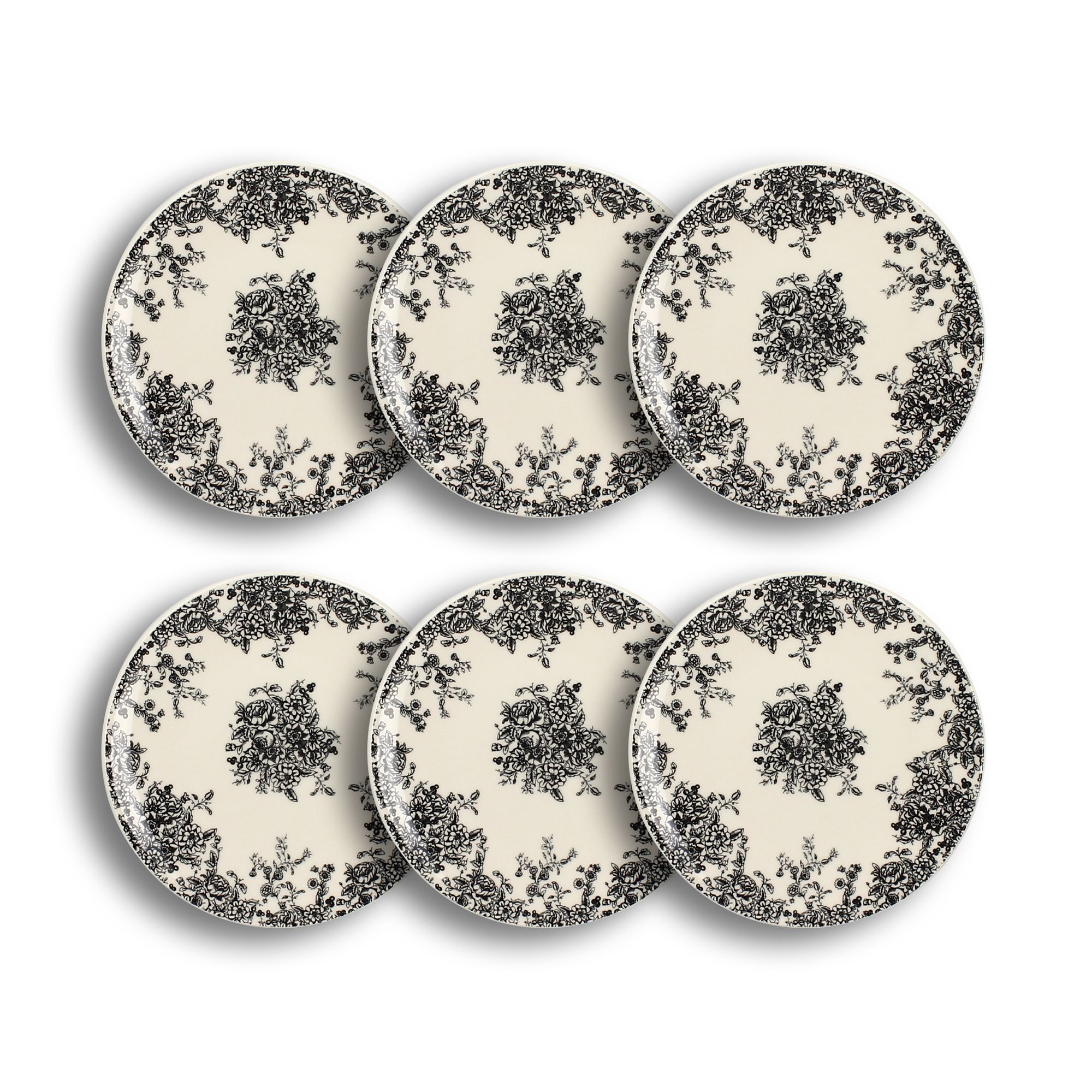 Lot de 6 assiettes à dessert porcelaine blanc et noir 19,5cm FLORALI
