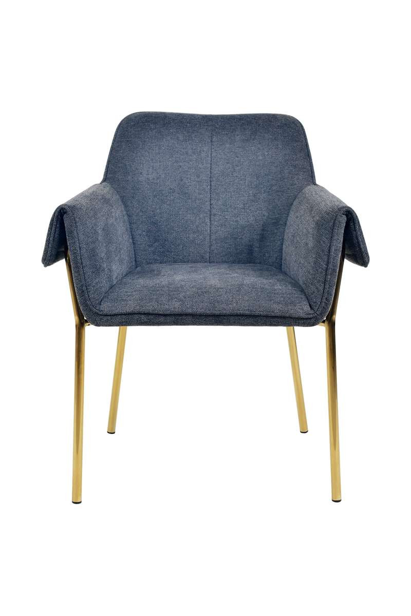 Chaise design en tissu, structure dorée, couleurs intemporelles