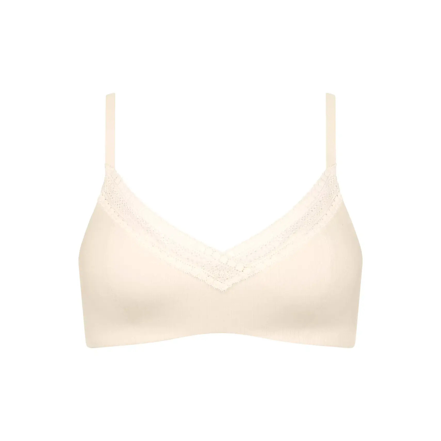 Ajoutez du confort dans votre tiroir de sous-vêtements avec ce soutien-gorge rembourré GO RIBBED, fabriqué en coton biologique côtelé ultra-doux, avec dentelle discrète, sans armatures ! - Soutien-gorge rembourré maintien moyen - Sans armatures - Coton biologique doux et côtelé - Dentelle douce à la ceinture - Bretelles réglables