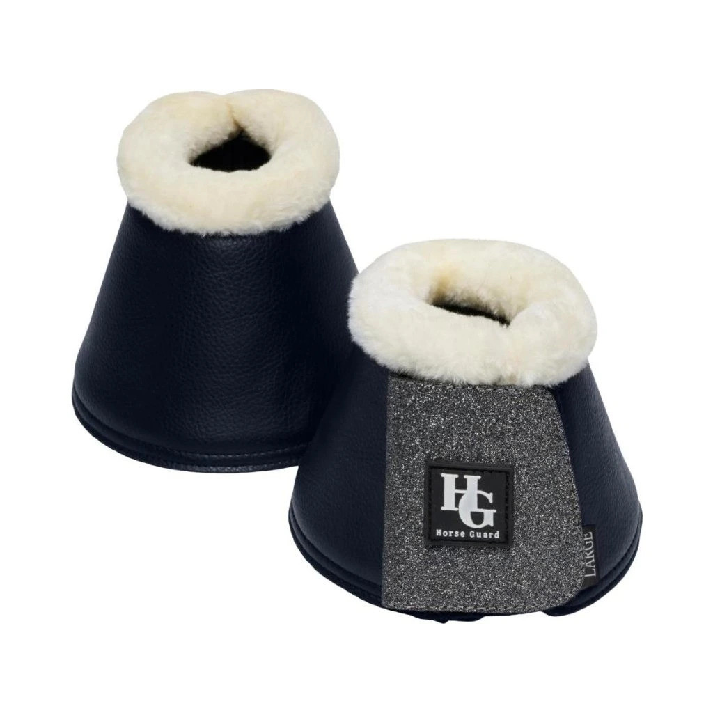 Leather look bell boot with a flexible outer shell and a soft breathable Neoprene lining. Top faux fur edging prevents irritation around the pastern area and makes them suitable for daily use or turnout. Thick Velcro strap for quick and easy application. decorated with glitter to match the "Lux" boot.
