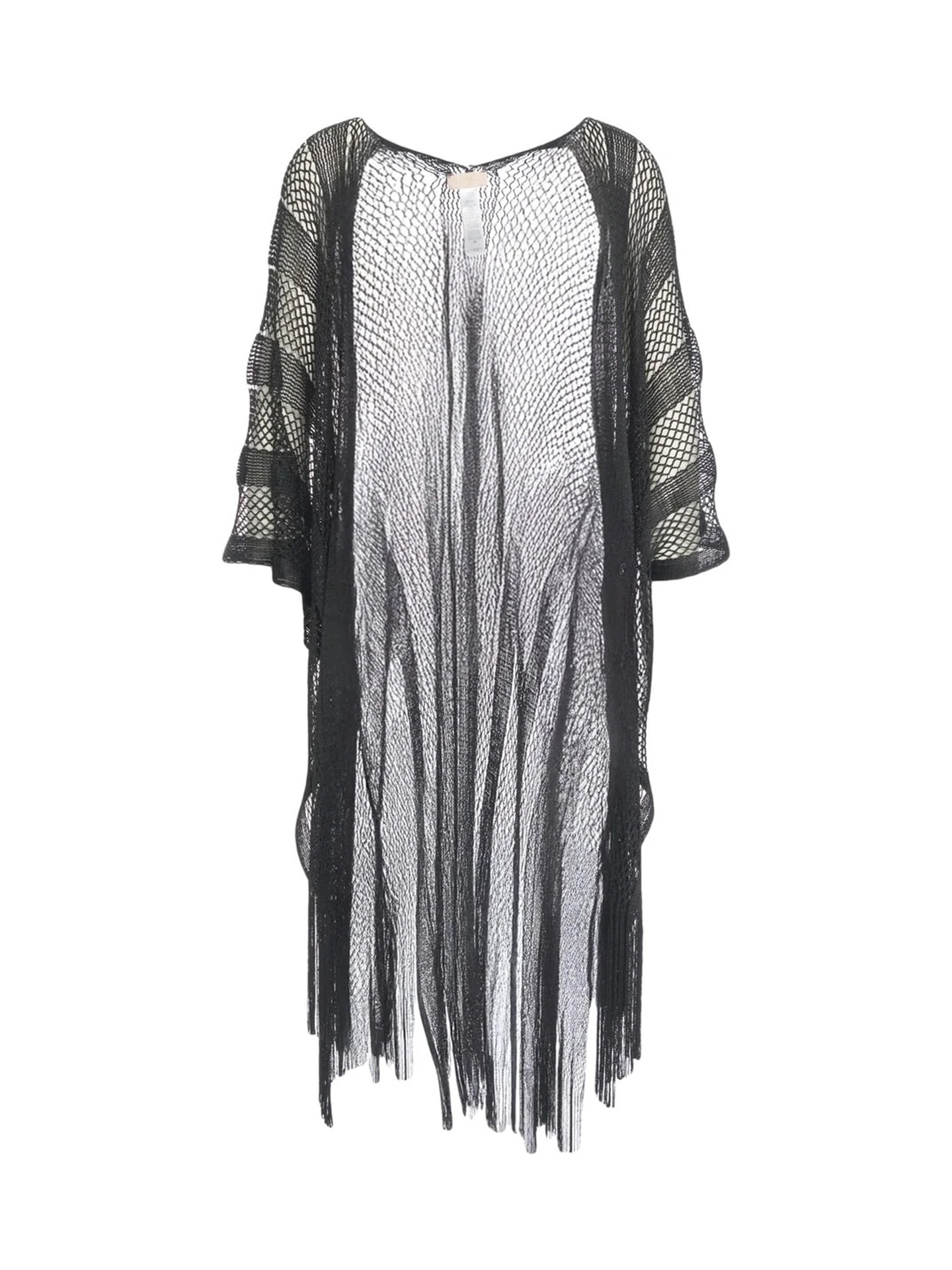 Gilet long en maille laminée avec franges en bas.