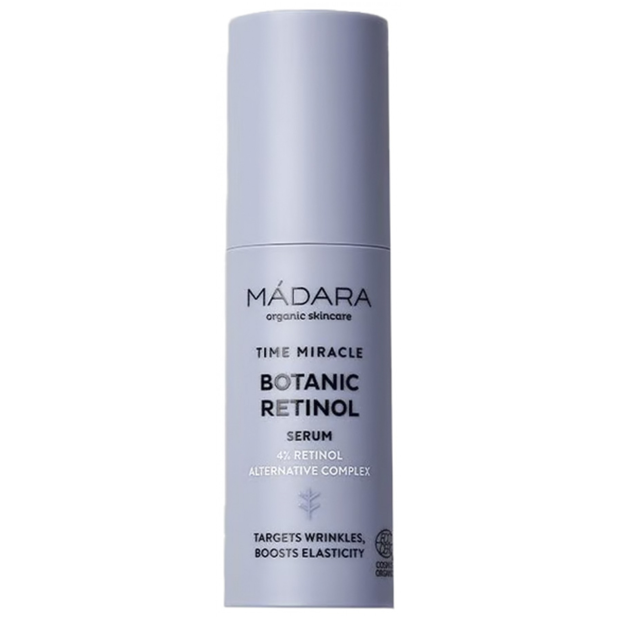 Mádara Botanic Retinol Sérum Bio 30 ml est un sérum qui, grâce à un complexe alternatif de rétinol végétal à 4 %, cible les signes du vieillissement tout aussi efficacement que le rétinol synthétique, mais sans irritation ni sécheresse.Il encourage la production de collagène pour restaurer l'élasticité, améliorer la fermeté et minimiser l'apparition des ridules pour une peau visiblement plus lisse et plus ferme.L'eau de bouleau nordique est rajeunissante. Elle améliore le processus de réparation et de renouvellement de la peau tandis que l'acide hyaluronique réhydrate en profondeur.Elle aide à harmoniser les peaux à tendance acnéique et traite l'hyperpigmentation et les imperfections pour améliorer la texture et le tonus de la peau. Formule adaptée à tous les types de peau, y compris les peaux sensibles. Testée dermatologiquement. Vegan. Cosmos Organic certifié par Ecocert Greenlife selon le référentiel Cosmos.