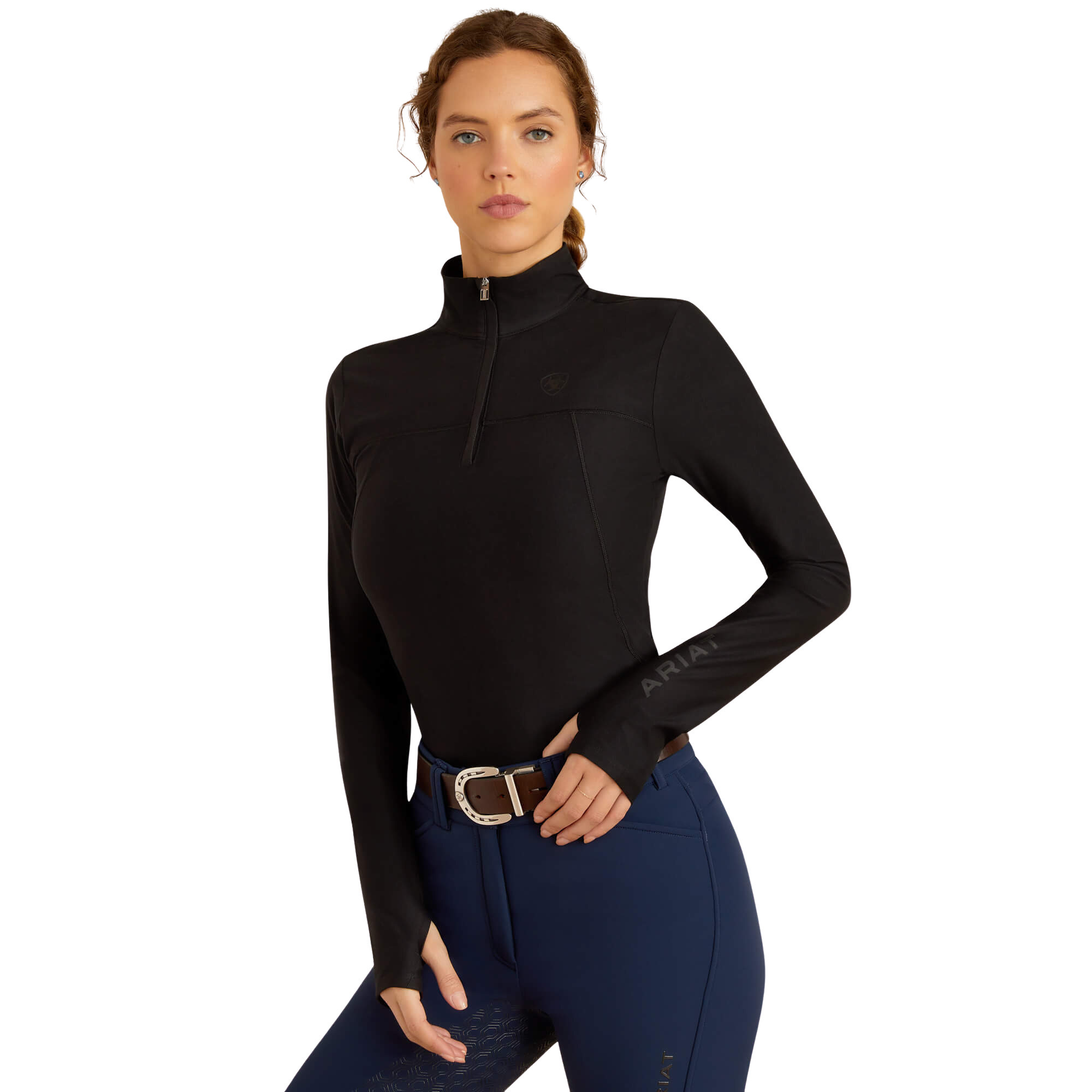 Un sous-pull très performant tout aussi confortable que son haut préféré. Le tissu en tricot recyclé permet d'évacuer l'humidité. Il est brossé afin de procurer une grande douceur et doté d'un stretch intégré pour faciliter les mouvements en selle et ailleurs. Caractéristiques - AriatTEK® pour un confort optimal par tous les temps - Système Moisture Movement Technology™ pour mieux vous garder au sec - Passants ergonomiques pour les pouces - Nouvelle version avec empiècements flatteurs - Faux col Matières - 88 % polyester recyclé, 12 % élasthanne - Jersey brossé stretch