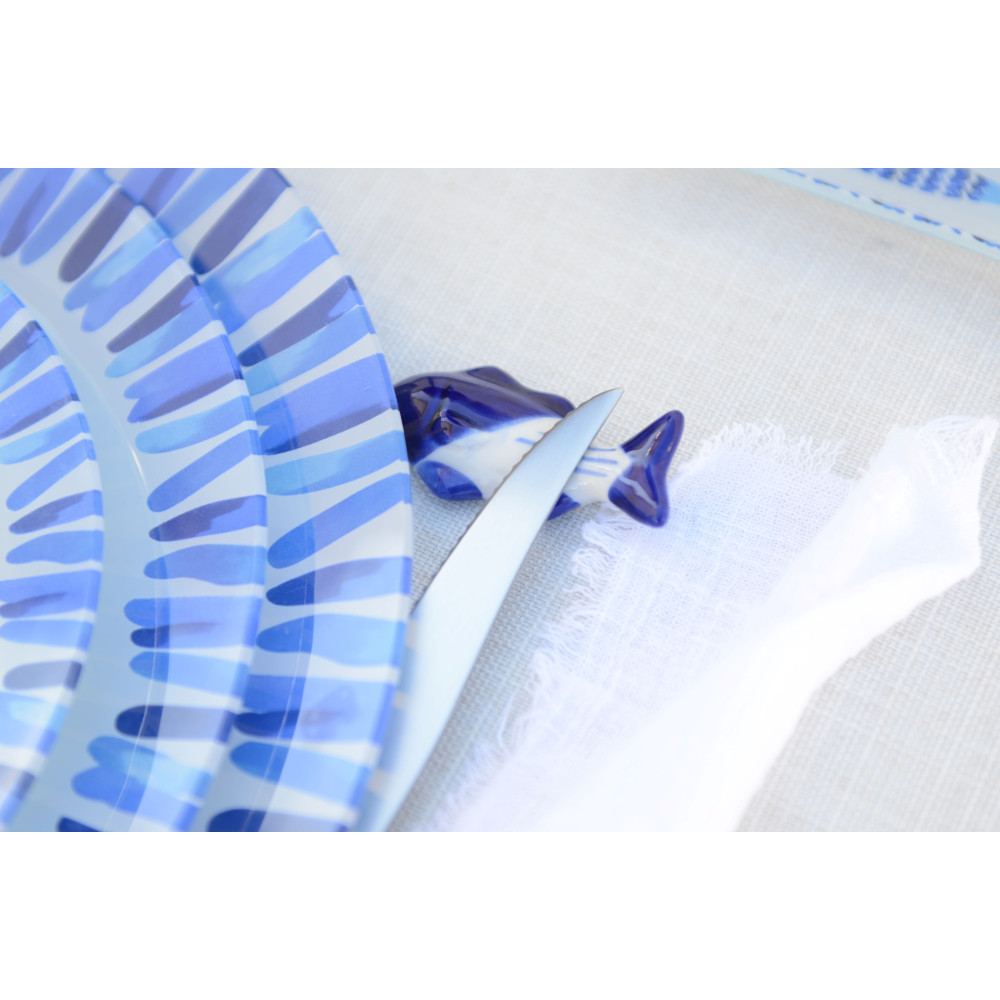 223101 - Lot de 6 porte couteaux baleine en porcelaine - AULICADécouvrez l\'élégance fonctionnelle des porte-couteaux Aulica, des accessoires indispensables qui allient design sophistiqué et praticité, parfaits pour organiser et protéger vos couteaux avec style; fabriqués à partir de matériaux de haute qualité, ces porte-couteaux reflètent un savoir-faire artisanal et une attention aux détails, offrant une solution chic et durable pour garder vos couteaux à portée de main tout en apportant une touche de raffinement à votre cuisine.Nos porte-couteaux sont fabriqués avec un savoir-faire artisanal où chaque pièce est unique, ajoutant charme et authenticité, célébrant ainsi l\'individualité de chaque création.Nous emballons toute notre vaisselle avec soin précaution pour éviter les casses.Caractéristiques :- Couleur : Bleu - Matière : Porcelaine- Dimensions : 6.5x2.8x1.8cm- Compatibilité lave-vaisselle : OUI- Compatibilité micro-ondes : OUI- Compatibilité four : NONVous pouvez recycler l'emballage de nos produits dans les poubelles jaunes.