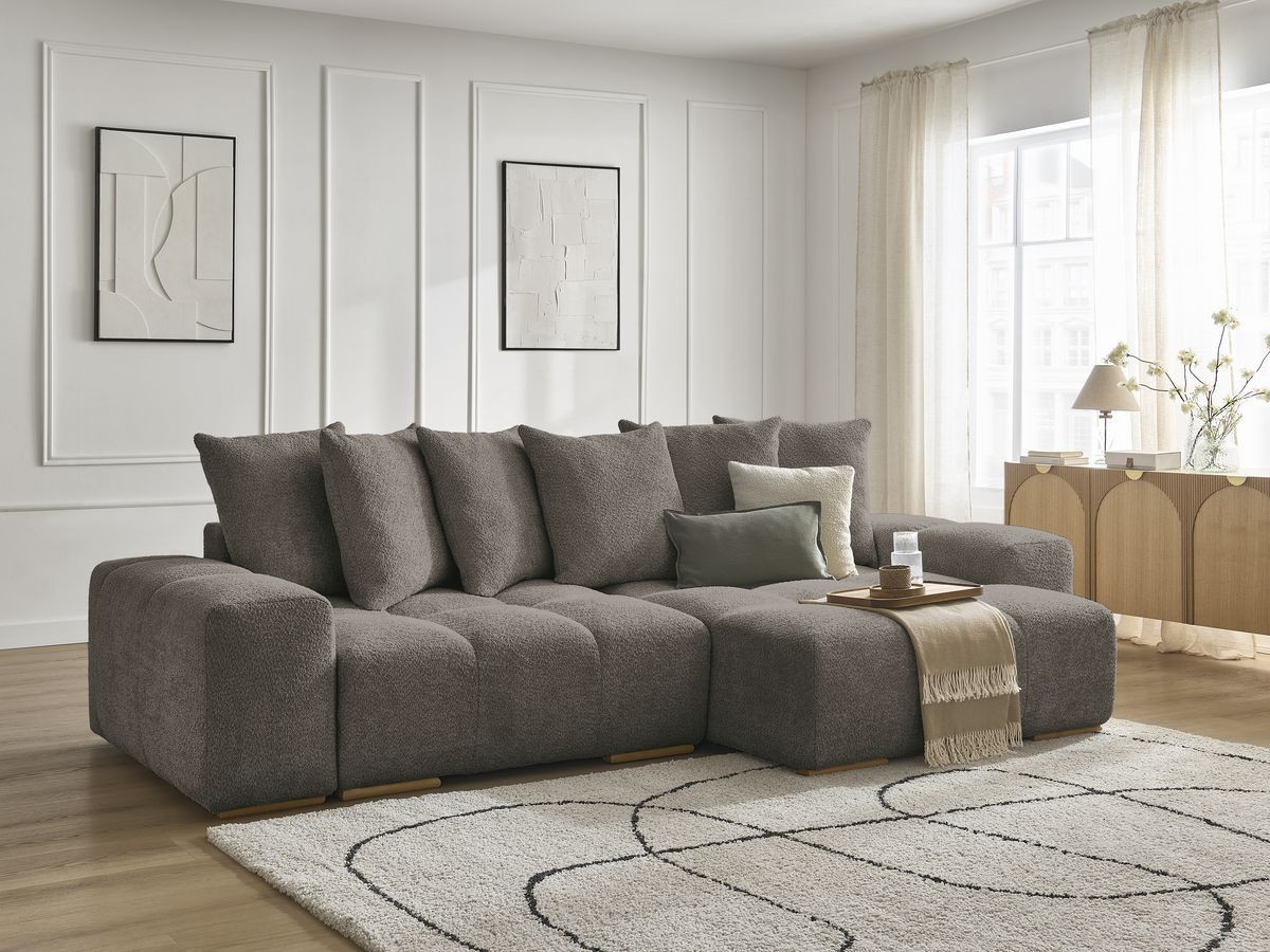Pour cette nouvelle collection ANAKIN, nous avons fait le choix de la décliner en deux revêtements différents afin que vous puissiez personnaliser son visuel et son confort. Envie d'un intérieur doux et apaisant ? Créez-vous un espace chaleureux avec les canapés ANAKIN dans leur déclinaison en tissu bouclette. En effet, le tissu bouclette saura mettre en valeur les formes du canapé tout en vous proposant un charme cocooning inimitable. Avec son effet texturé et sa touche de douceur, le tissu bouclette est un revêtement qui fera de votre canapé un vrai cocoon de chaleur et un nid de confort !