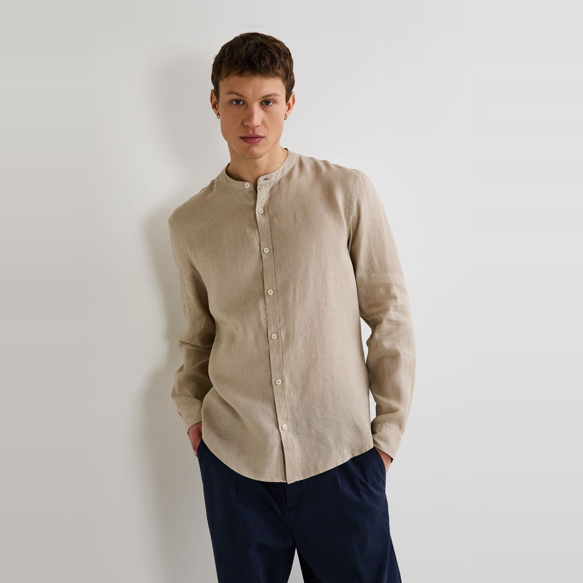 Chemise manches longues col mao en lin- MONOPRIX PREMIUM