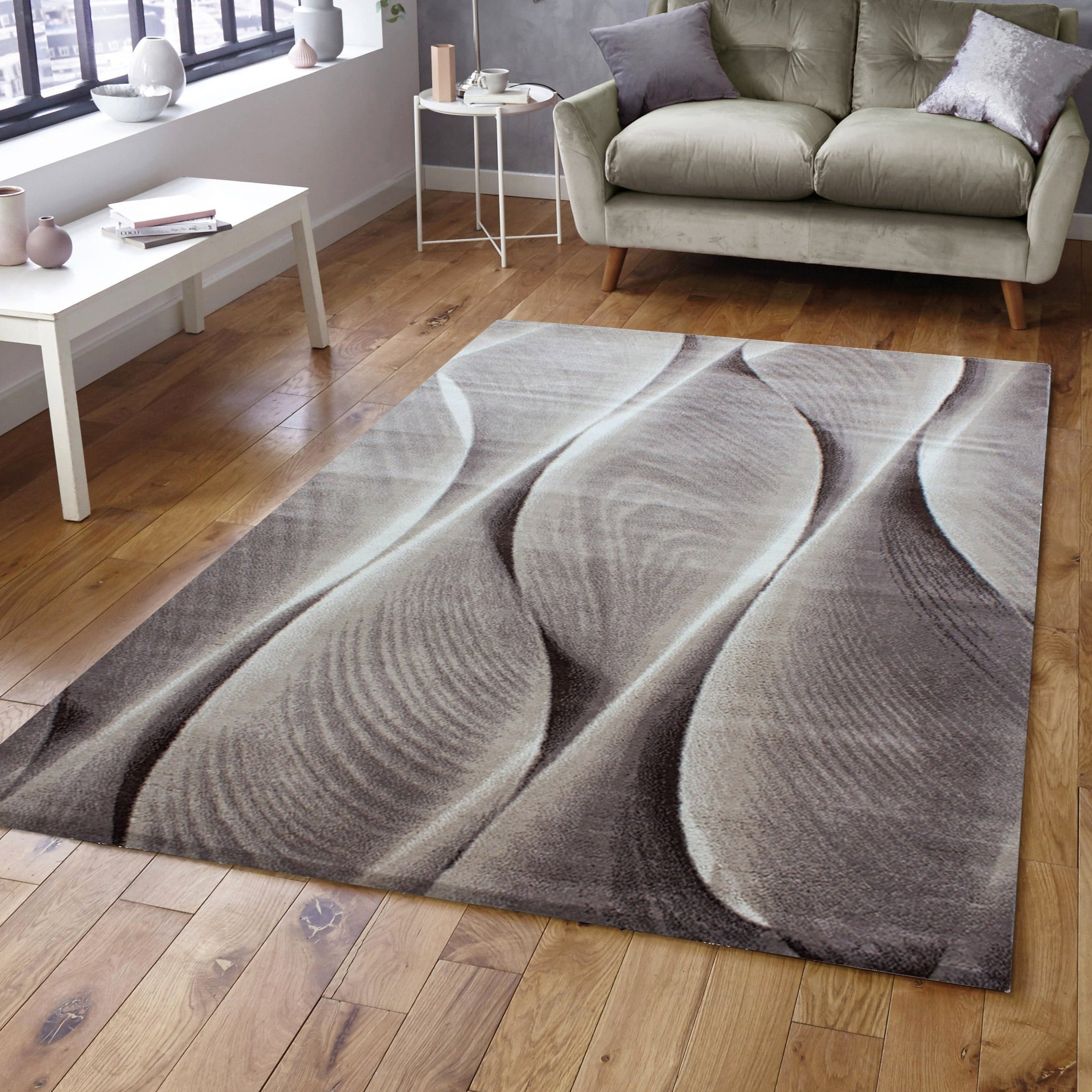 ARIA - Tapis Graphique à effet vagues - Marron et Beige