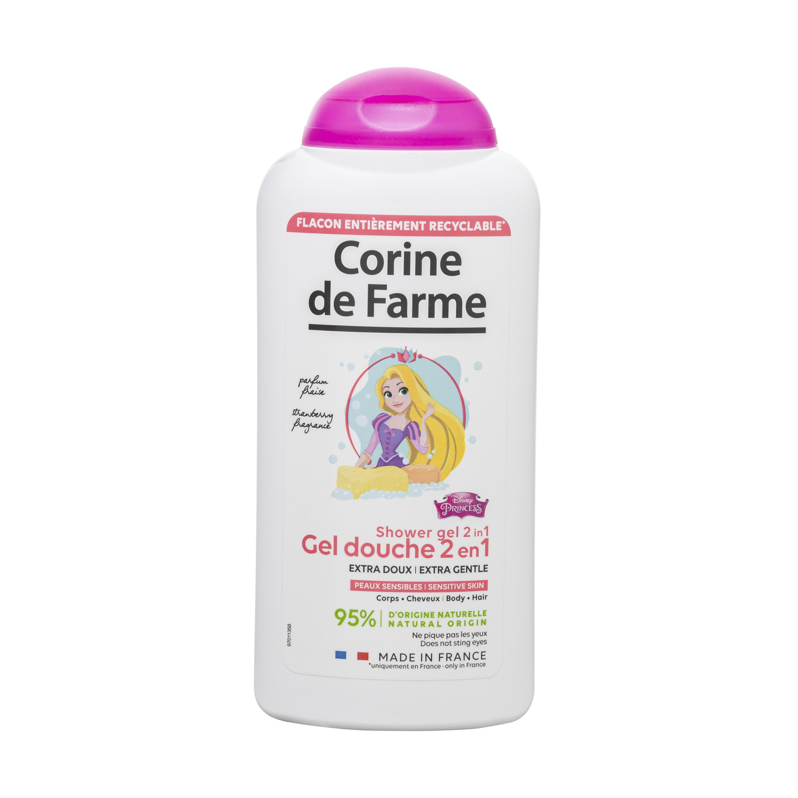 Nouveau Format : Retrouvez votre Gel Douche Princesses en format 300ml L'univers féérique Disney avec Princesse Raiponce et le Gel douche 2en1 extra doux Corps et Cheveux Princesses ! Ce gel douche nettoie en toute sécurité et en douceur la peau et les cheveux des petites filles et les laisse délicatement parfumés. Son parfum fraise délicat fera du bain un véritable moment de plaisir. A vous la chevelure de rêve !