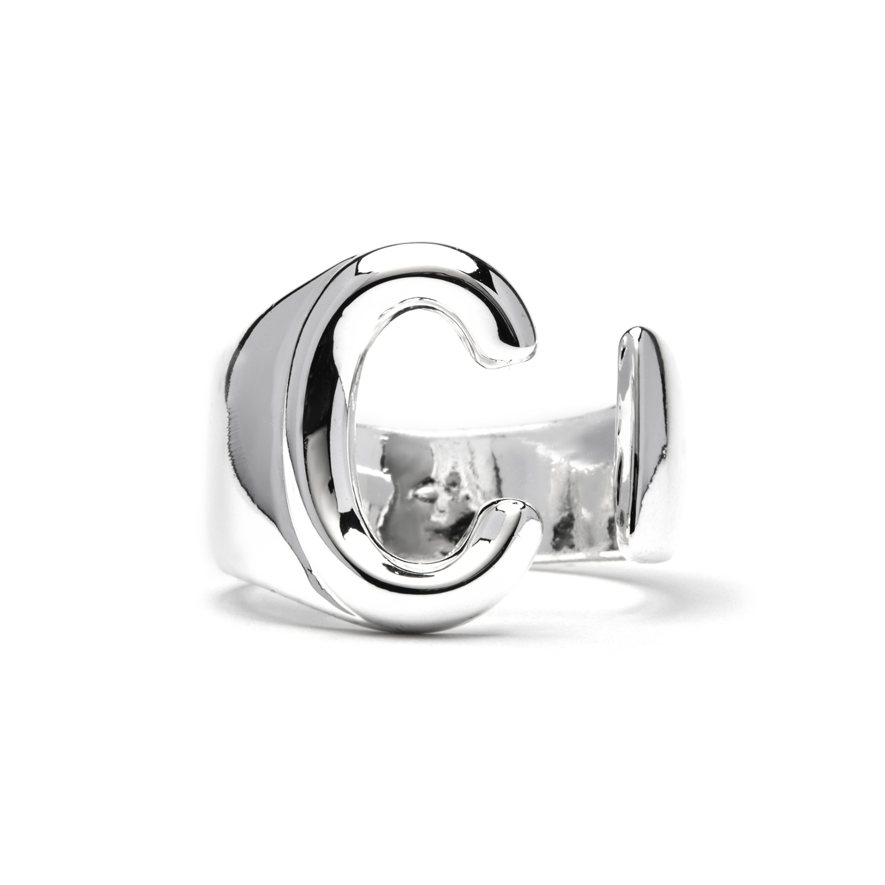 Luxenter Alphabet Bague taille ajustable plaquée rhodium - Lettre C