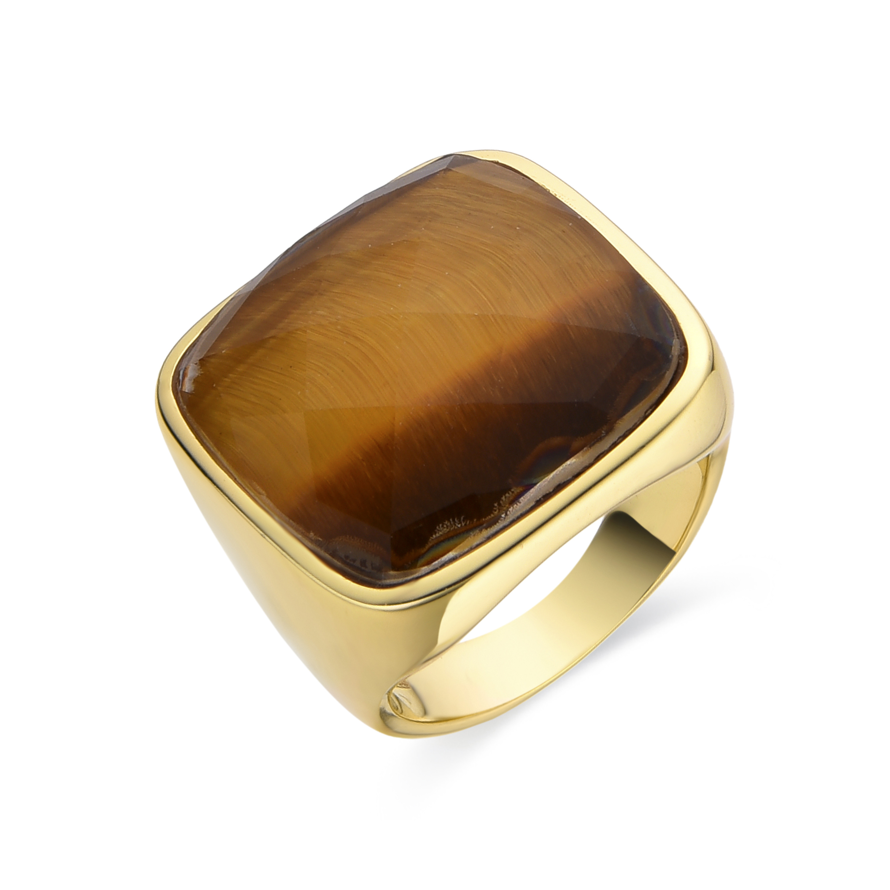 Luxenter Bague en argent 925 avec œil de tigre plaqué en or jaune 18 carats - Zenshi