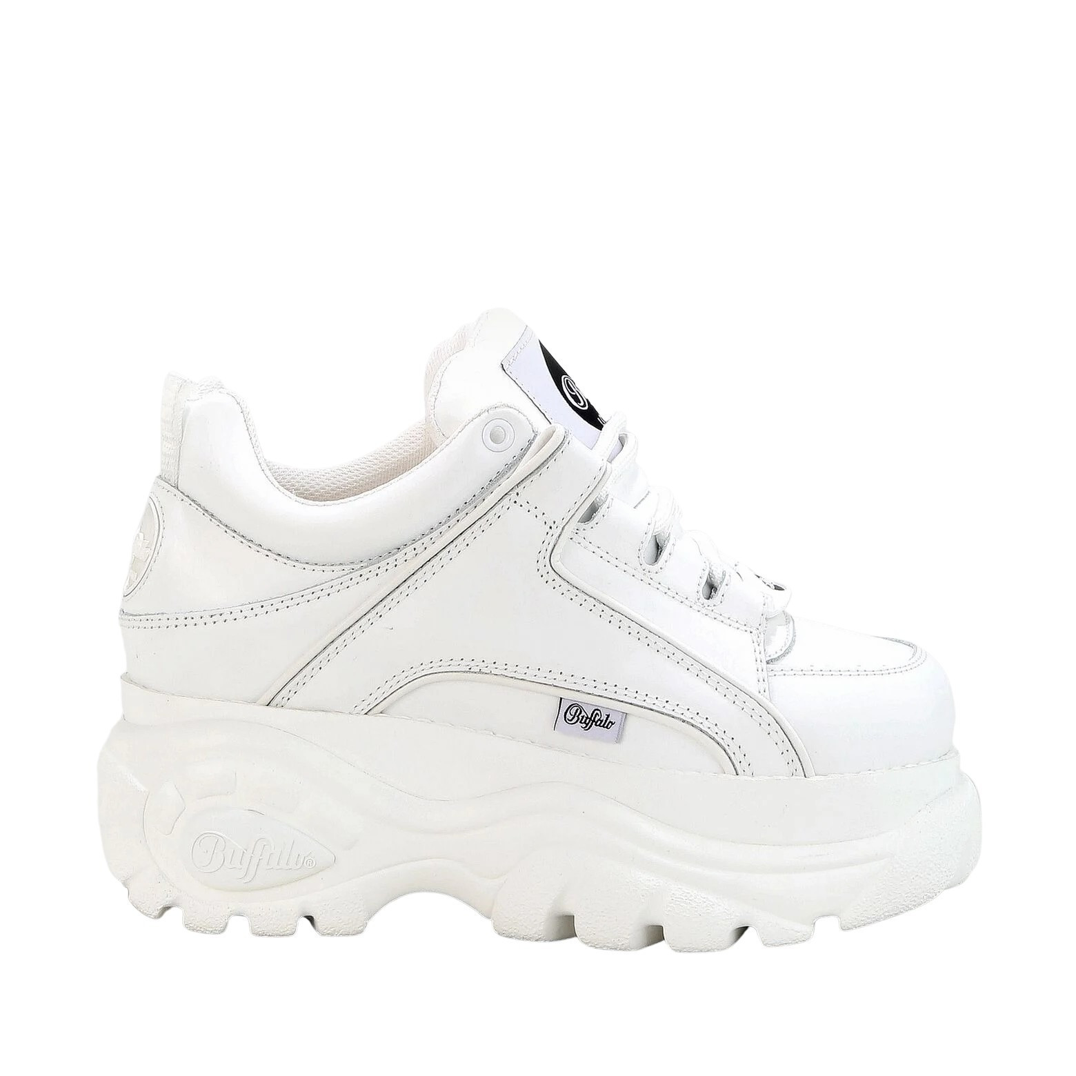 Welcome back to the 90s : les baskets Buffalo Classics en cuir véritable d'un blanc éclatant ne manquent pas d'attirer les regards grâce à leur semelle à plateforme profilée super épaisse au style nuages. Les logos cool de la marque ainsi que les coutures décoratives donnent particulièrement une touche rétro aux styles urbains, qui fait atteindre le septième ciel aux amoureux de la mode.Caractéristiques :cuir de veau blancsemelle à plateforme profilée de 6 cmrembourrage confortable