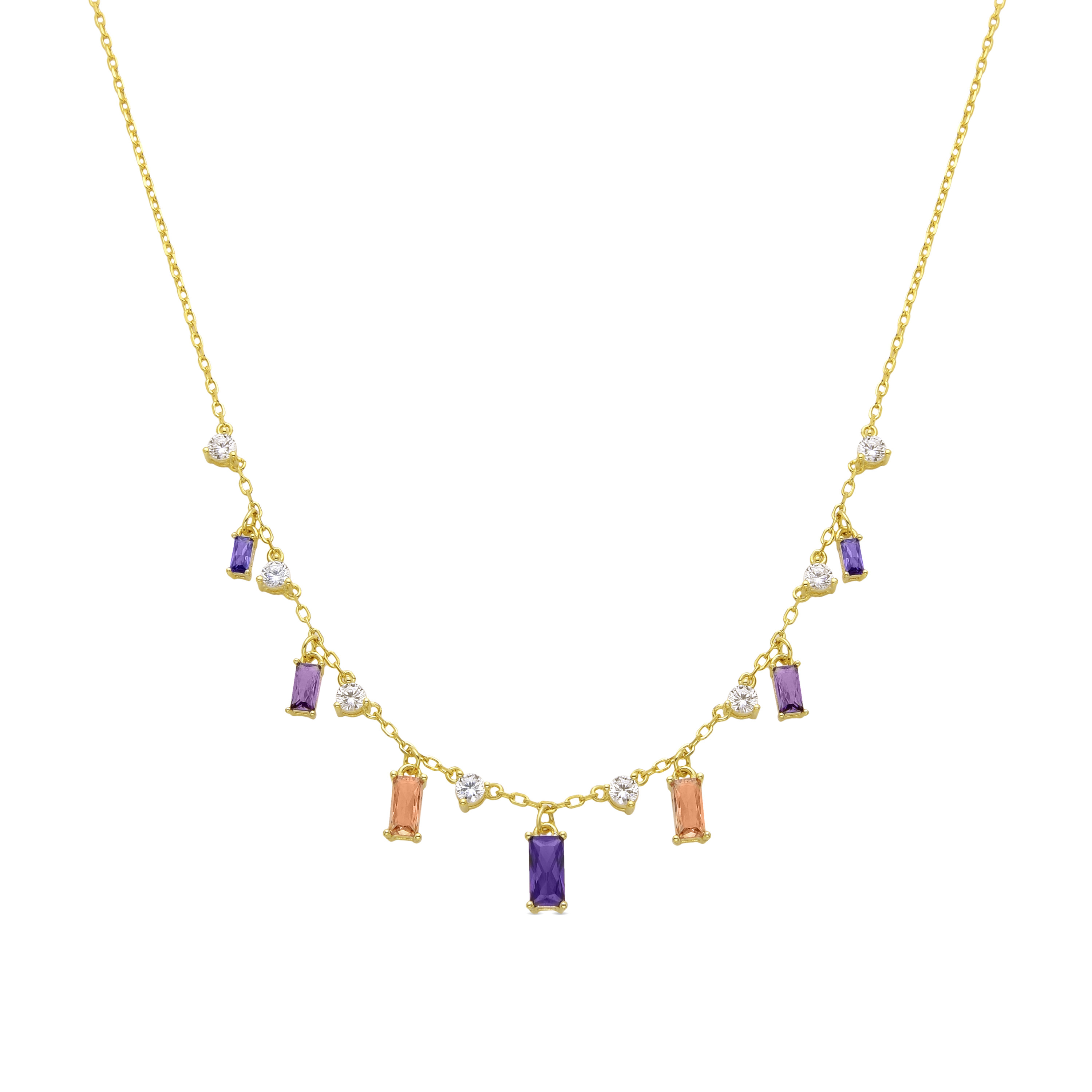 Collier Luxenter en argent 925 avec zircons multicolores finis plaqué en or jaune 18K - Caskik