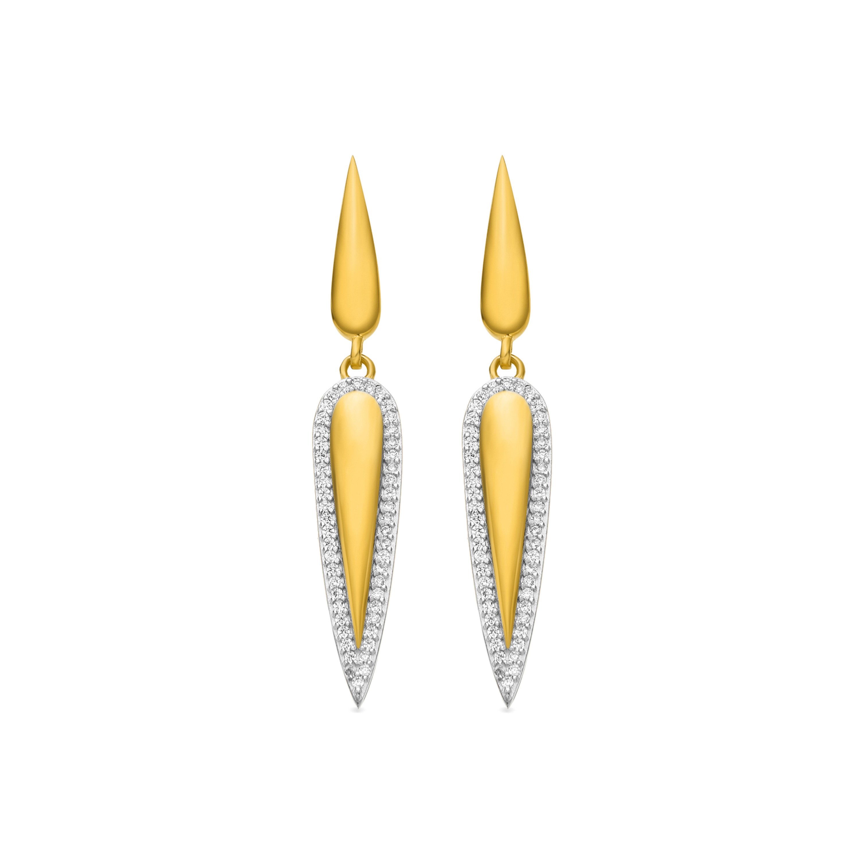 Les boucles d'oreilles Omiya en argent sterling 925 et zircon étincelant finition or 18k. Trendy représente les tendances clés du monde de la mode. Notre ligne la plus spontanée, avec un esprit moderne marqué qui se concentre sur des bijoux pleins de couleurs, y compris l'utilisation de pierres naturelles et de motifs sous forme de charmes et de talismans.