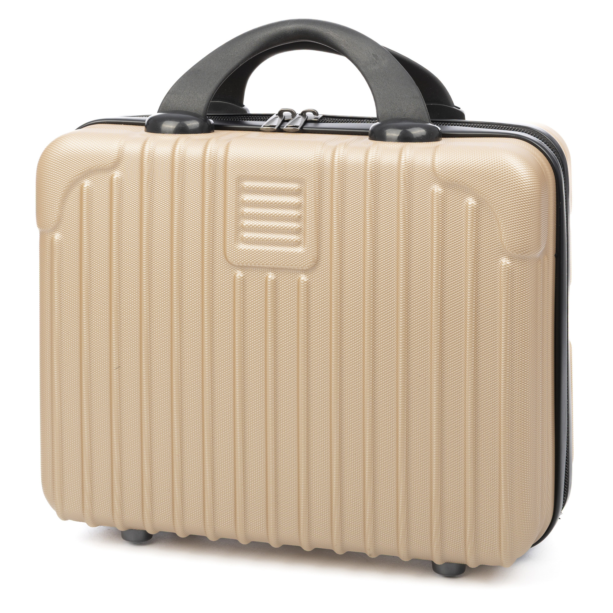 DAM Trousse rigide ultralégère en ABS. Adaptable à un chariot. 12 pouces. 31x14,5x25 Cm. Couleur : Or • Trousse rigide ultralégère, aux lignes modernes et élégantes. • Poignée flexible pour faciliter sa manipulation. • Extrêmement résistant à l'usure et aux chocs grâce à sa fabrication en ABS ; résistant à l'eau et aux intempéries. • Sangle élastique pour s'adapter à la poignée d'une valise trolley et faciliter son transport. • Base avec 4 pieds de support ; double fermeture éclair. • Intérieur doublé en tissu, compartiment intérieur avec rabat, fermeture éclair et poche secondaire en filet. ABS, alliage métallique, tissu.