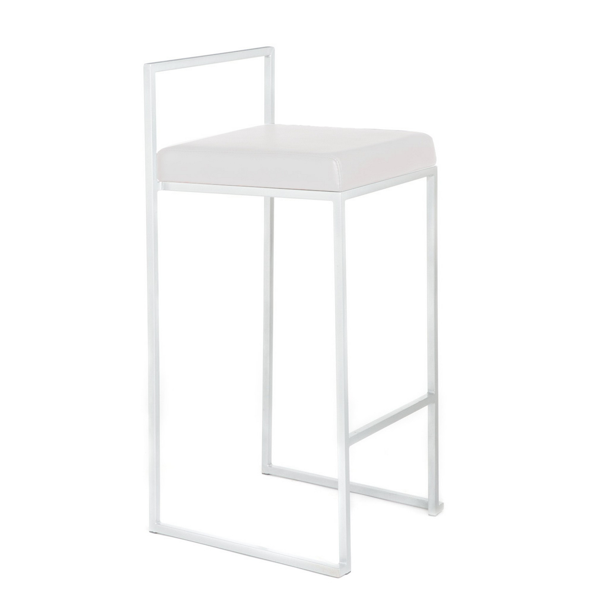 Lot de 2 tabourets Dodo blanc cuir synthétique, métal blanc, h.88 x l.41 x p.41 cm