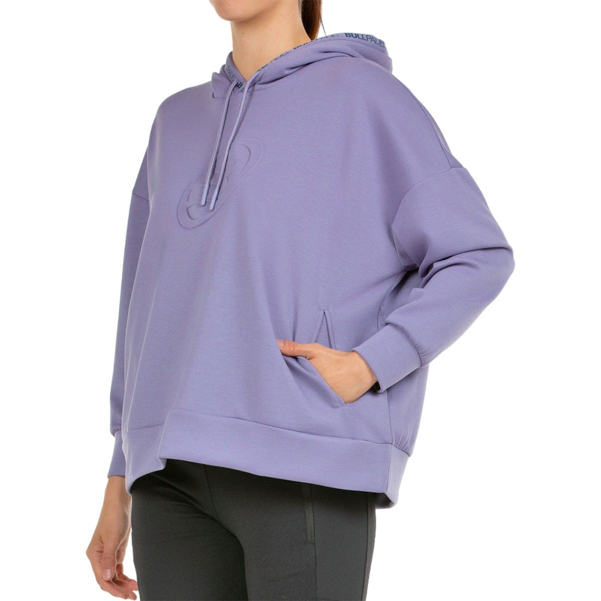 Le sweat-shirt Bullpadel Naron pour femme, qui fait partie de la collection Winter W 2024, allie modernité et fonctionnalité. Ce vêtement est fabriqué dans un tissu Interlock léger qui mélange du polyester et de la viscose élastique, offrant à la fois confort et flexibilité. Son design comprend une capuche ajustable avec cordon de serrage et des poches latérales pratiques, parfaites pour transporter confortablement vos