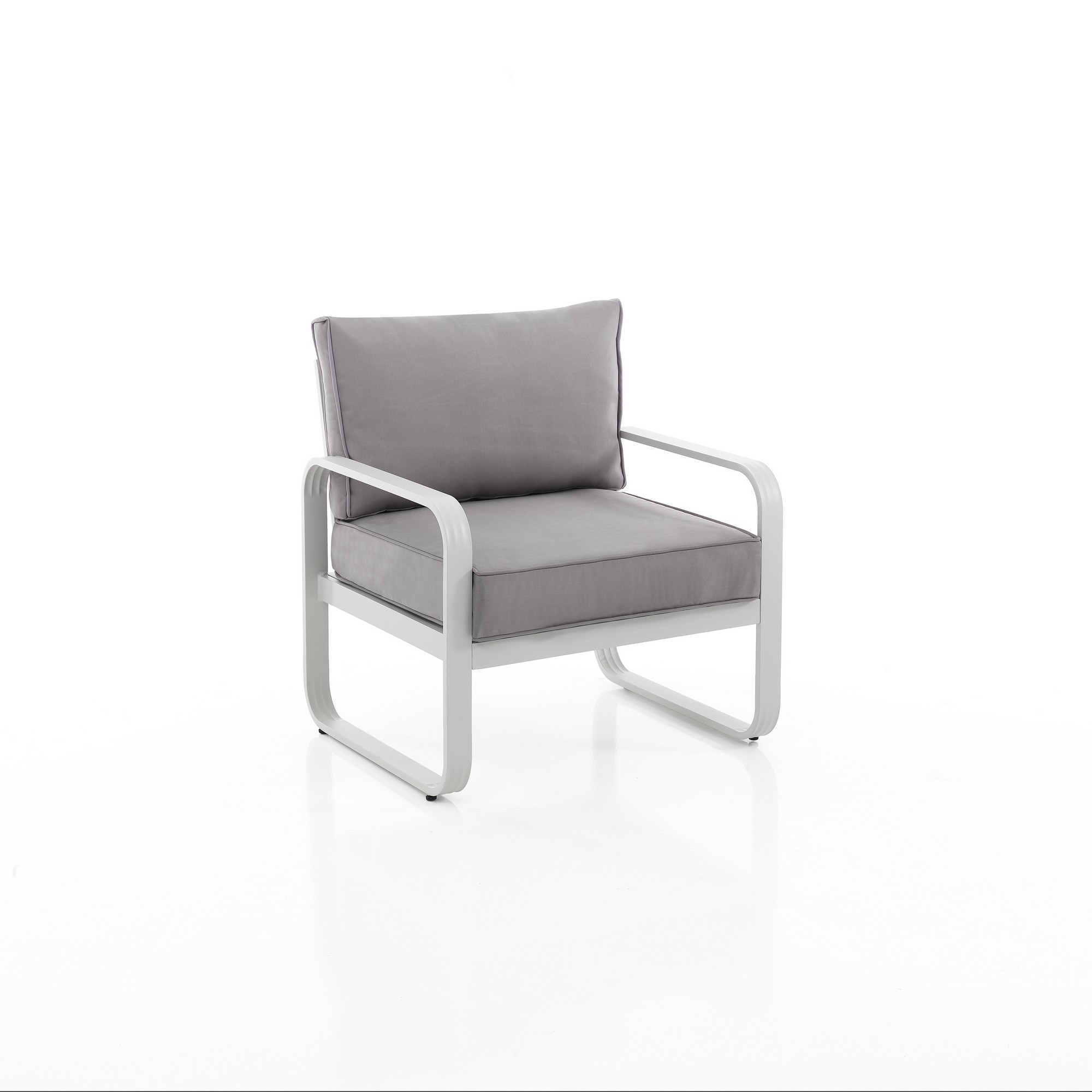 fauteuil d'extérieur programme ischia - structure en aluminium peint en blanc ivoire mat - coussins recouverts de polyester gris déperlant (déhoussables) - dimensions cm. h.76 x l.71 x p.72 - assise du canapé cm. h.45 x l.60 x p.50