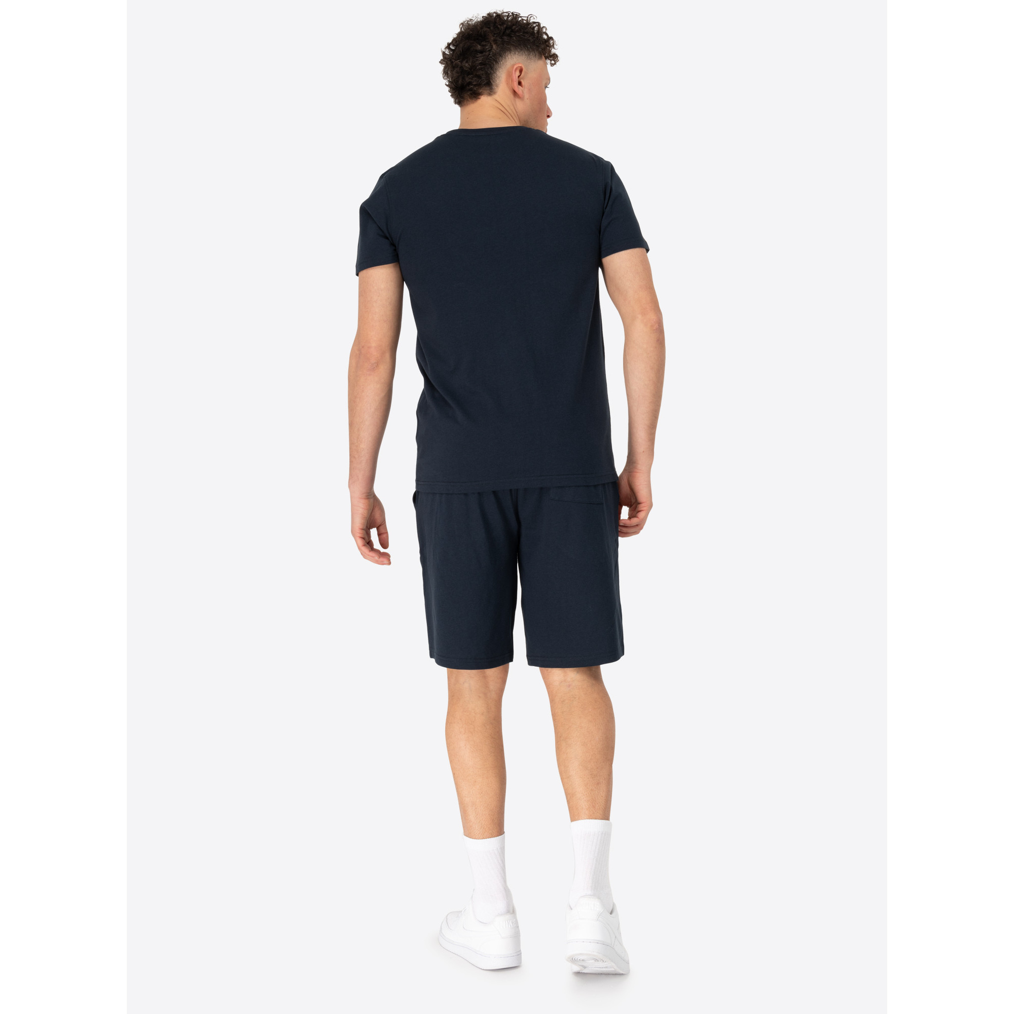 - Modèle : ensemble composé d'un t-shirt et de shorts. Les deux pièces ont un logo contrastant imprimé sur la poitrine et la cuisse gauche respectivement. Les shorts ont deux poches à l'avant et une poche plaquée à l'arrière. - Qualité : 100% coton peigné - Qualité col. Marl Grey : 90% coton peigné, 10% viscose - Tissu : Jersey