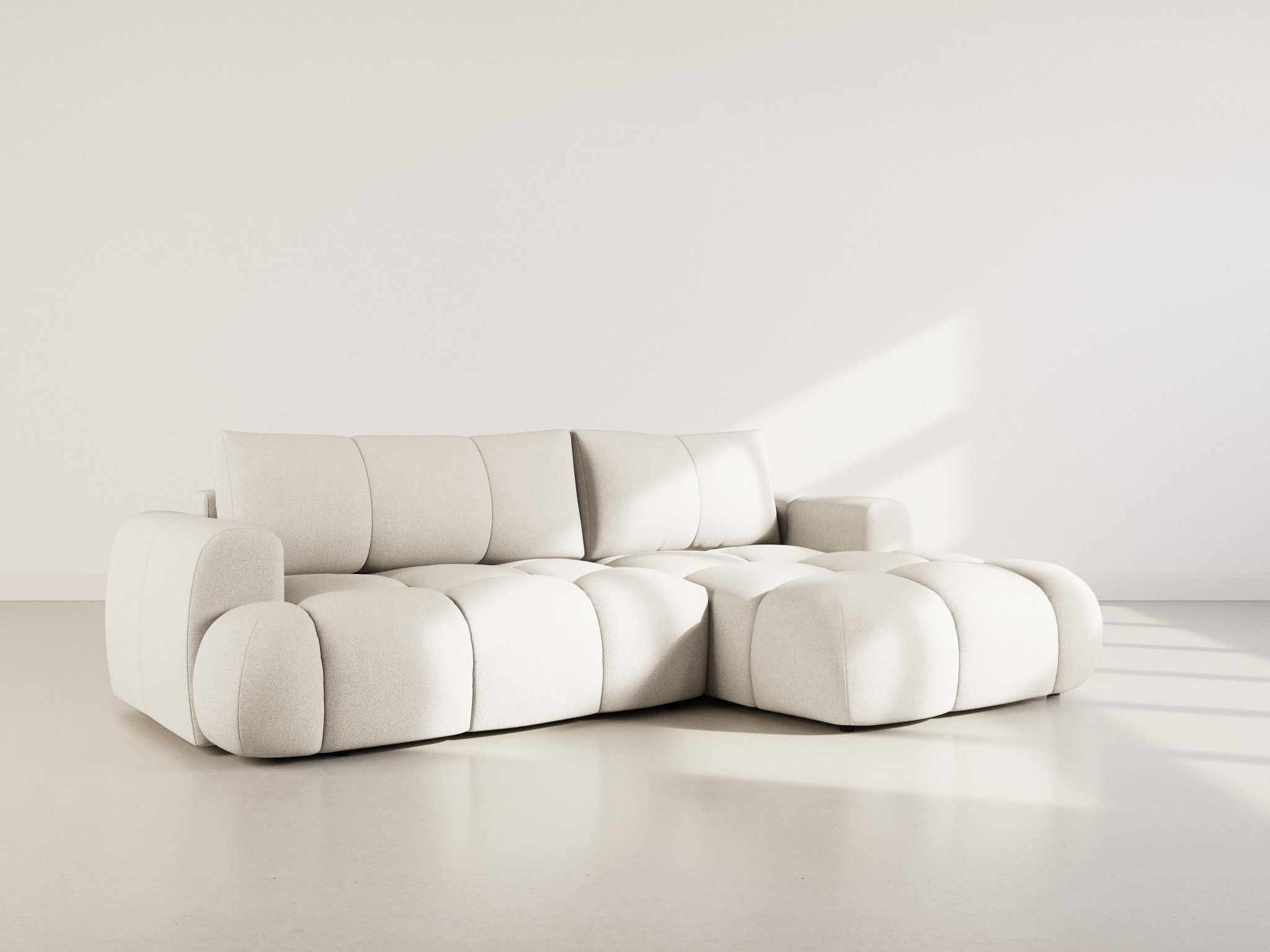 Yulin - Canapé d'angle droit 4 places convertible avec coffre en tissu bouclette