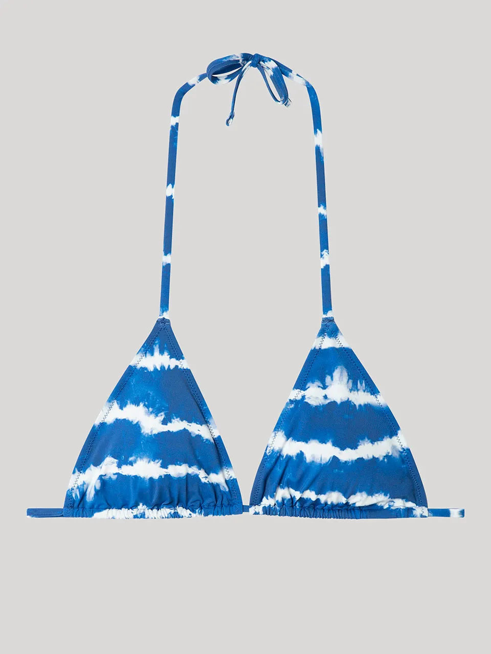 Haut de bikini triangulaire sans armature et avec mousse en tissu imprimé tie-dye. Associez-le à sa culotte assortie.