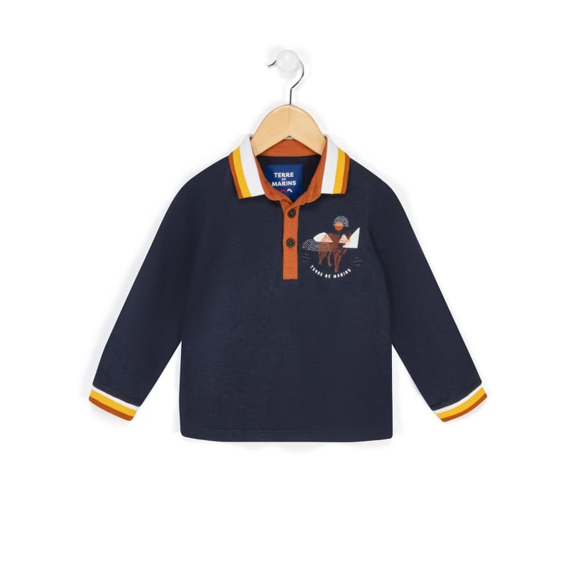 Polo manches longues bleu marine Garçon - Terre de Marins