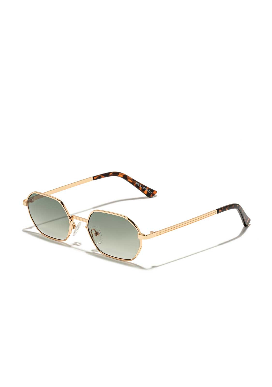 Information sur l'offre : Gafas de sol translúcidas con diseño geométrico. El legado de las piezas más icónicas de los 70 se fusiona con una selección de detalles actuales. El diseño Square Legacy presenta un acabado metálico con estética hexagonal. Su montura en tono dorado ha sido diseñada con unas lentes antirreflectantes de acabado degradado verde que permiten traspasar la mirada y definir las facciones. Su frontal es de 141 mm y su ancho de lente de 54 mm. Las patillas tienen una longitud de 140 mm y cuentan con nuestros detalles distintivos. Una pieza retro a la vez que minimalista con la que enmarcar cualquier estilismo. Además, cuenta con sistema Rim Lock que permite la sustitución de las lentes por unas graduadas. Protección ultravioleta UV 400 cat. 2.