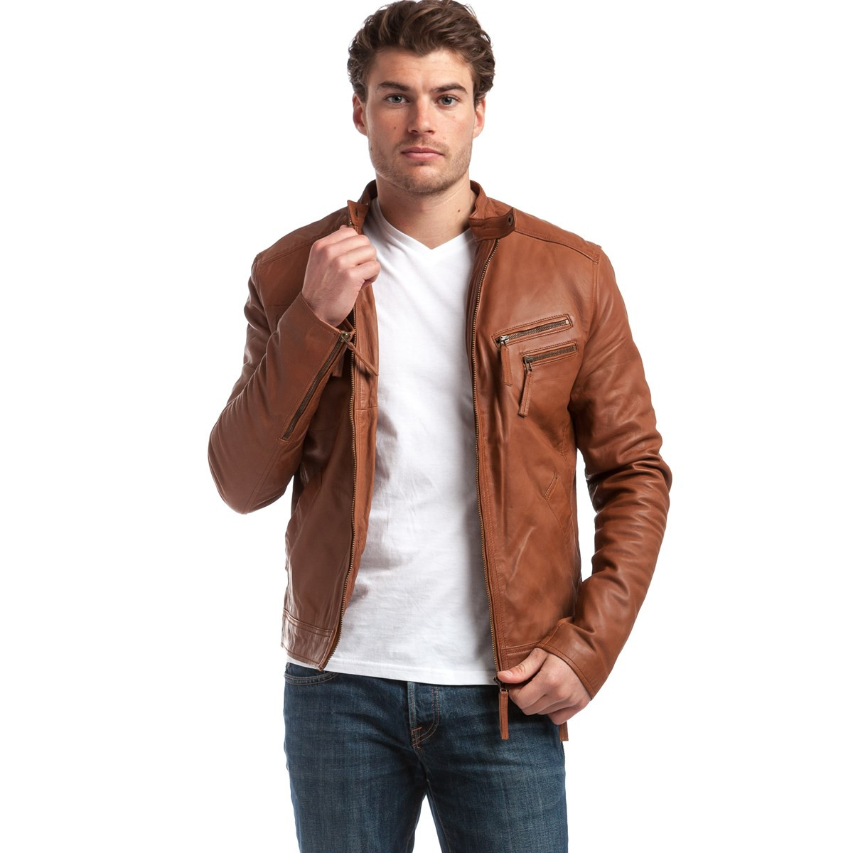 Veste en cuir 100% mouton. Coupe courte et ajustée près du corps, la veste Alessandro représente parfaitement le style biker. Fermeture éclair au centre, bouton-pression au niveau du cou, cette veste se marie parfaitement avec un jean. Il peut être porté ouvert pour un style chic et décontracté ou fermé pour un look plus sportif.