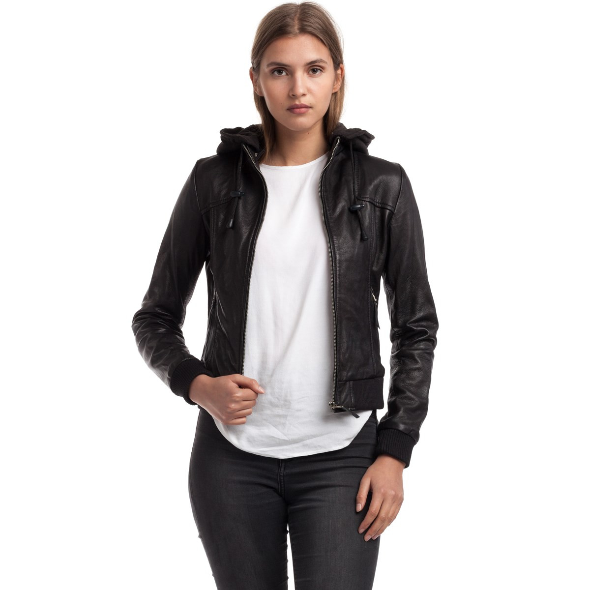 Chyston - Blouson cuir avec capuche intégrée ROXANE