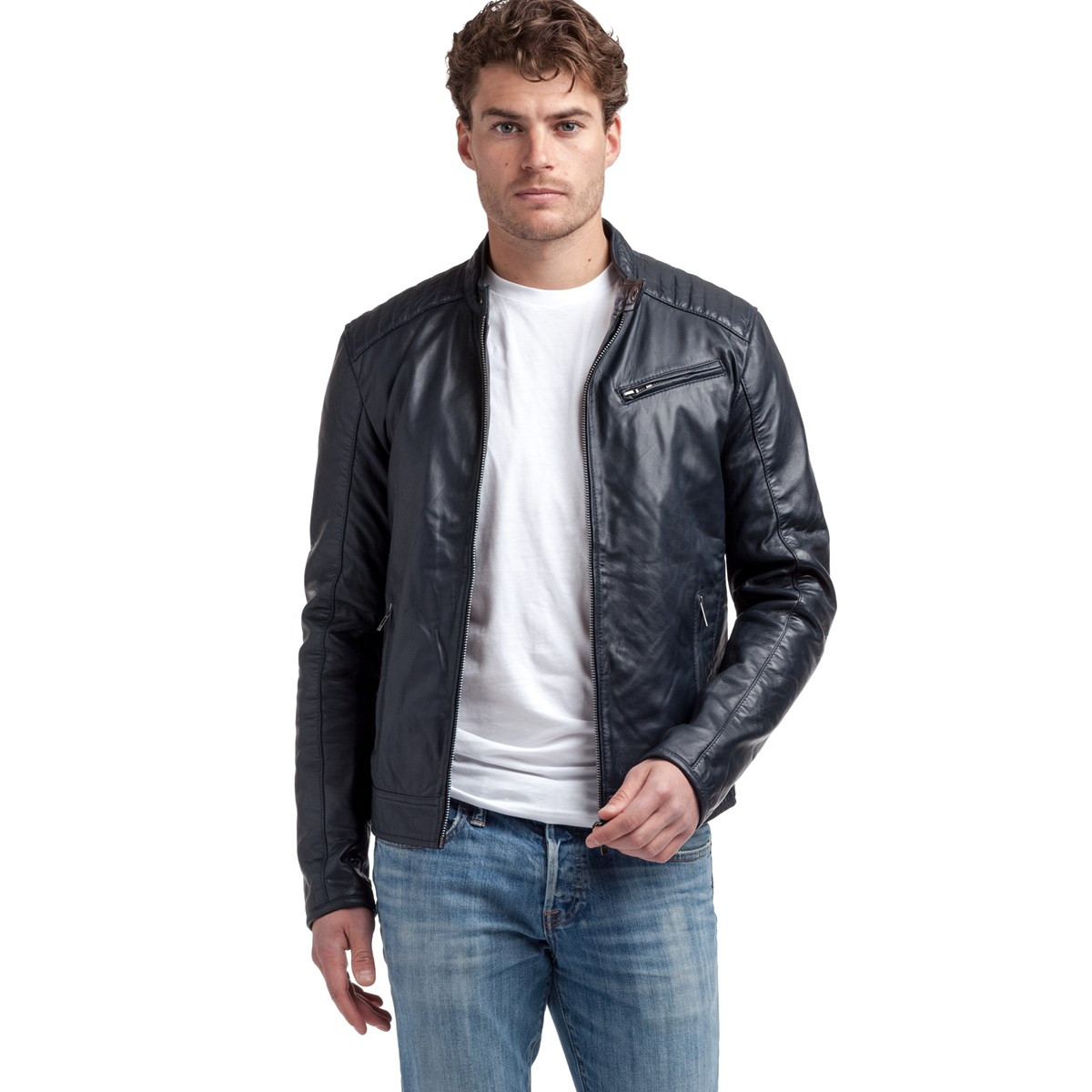 Veste en cuir 100% mouton. Coupe courte et ajustée près du corps, la veste Michael représente la quintessence du style motard. Fermée par une fermeture éclair au centre, bouton pression au niveau du cou, cette veste intemporelle peut se porter aussi bien  ouverte pour un style décontracté ou fermée pour un style plus habillé.