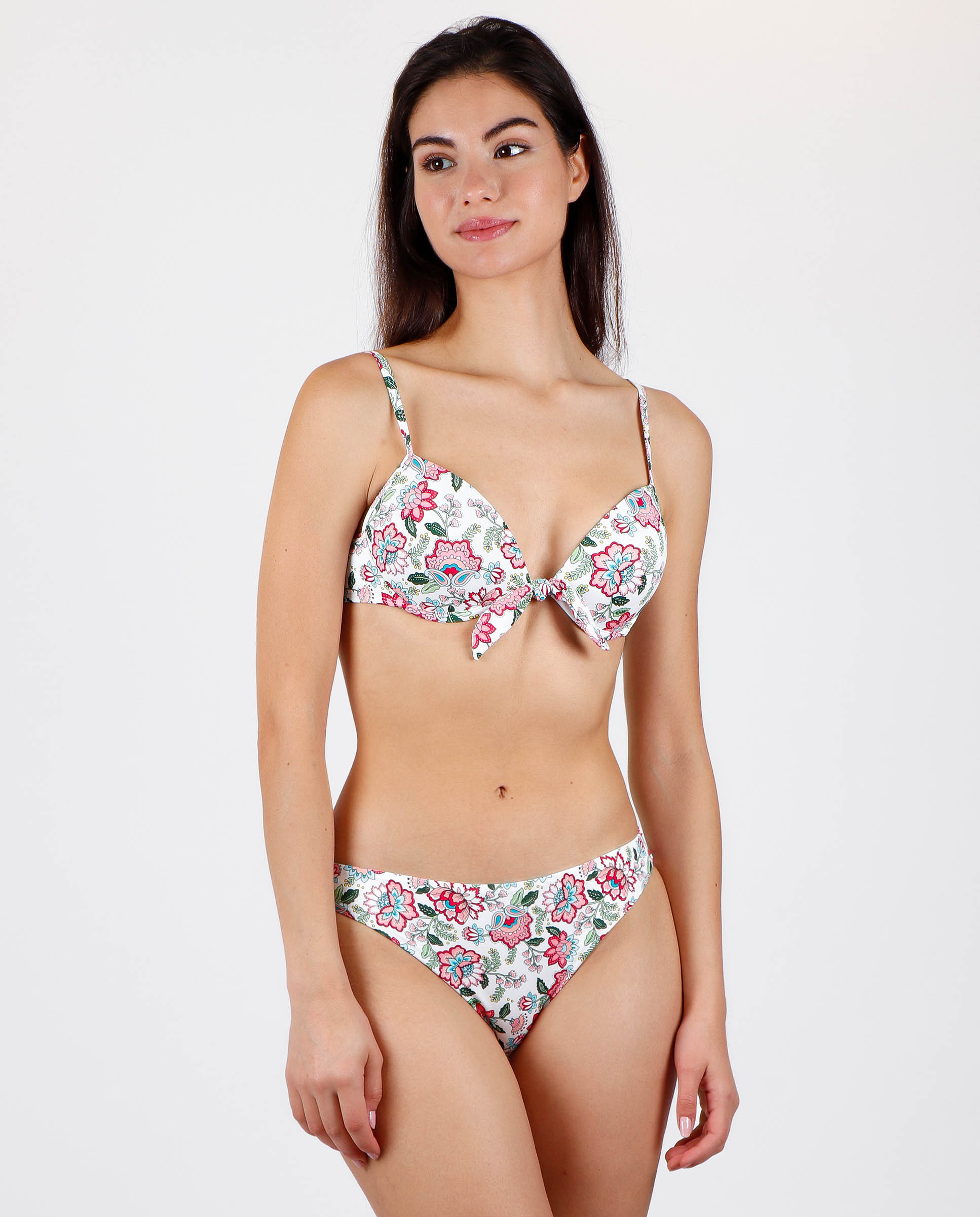 * Bikini push-up, en tissu de bain extensible, composé de deux pièces (haut noué et culotte), avec un imprimé très estival