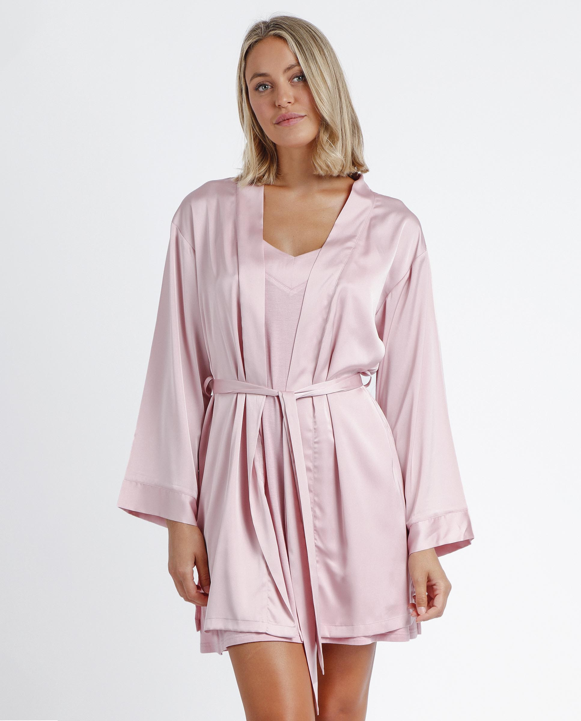 Robe de chambre en satin à manches longues et bandes pour femme ADMAS CLASSIC