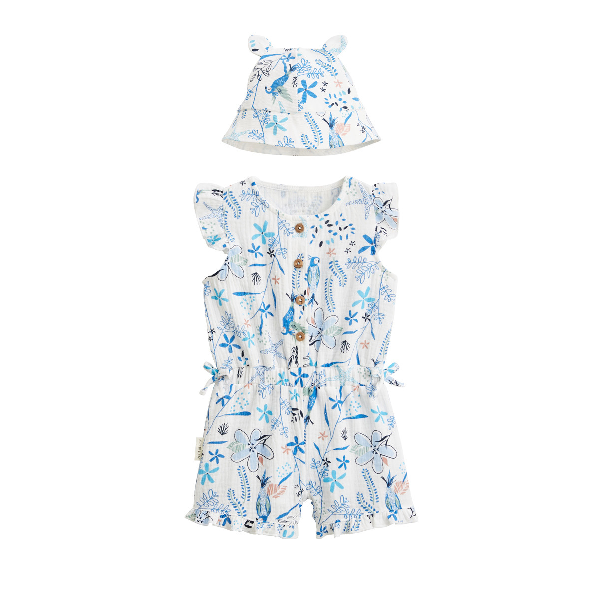 Combishort bébé + chapeau en gaze de coton OCÉAN