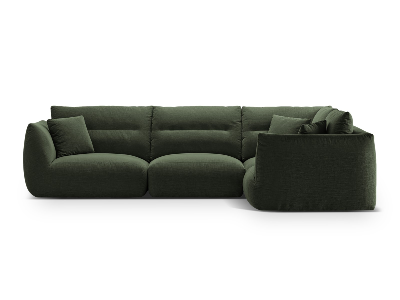 Canapé d'angle droit modulable "Maurie" 5 places en tissu structurel vert mousse