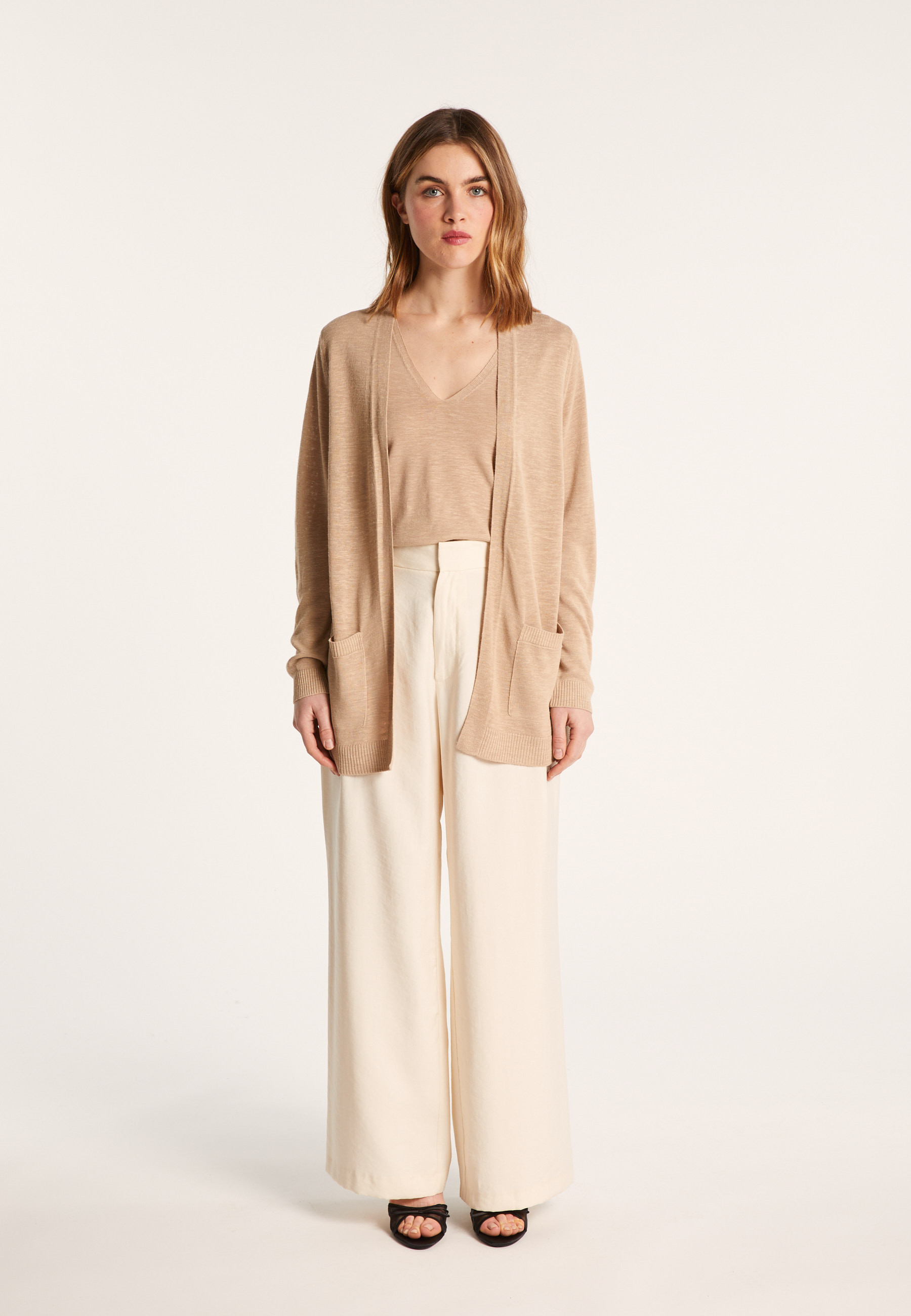 Pièce emblématique de notre Collection Printemps-Été 2024, le gilet long Naelle incarne la parfaite alliance entre le confort et l'élégance.