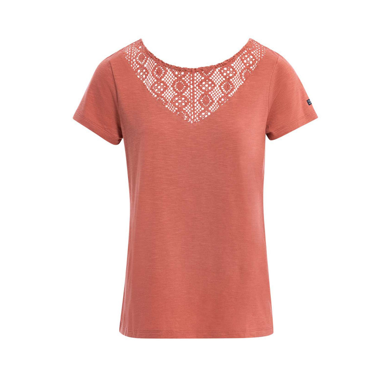 T-shirt Femme rouge brique avec col en dentelle - Terre de Marins