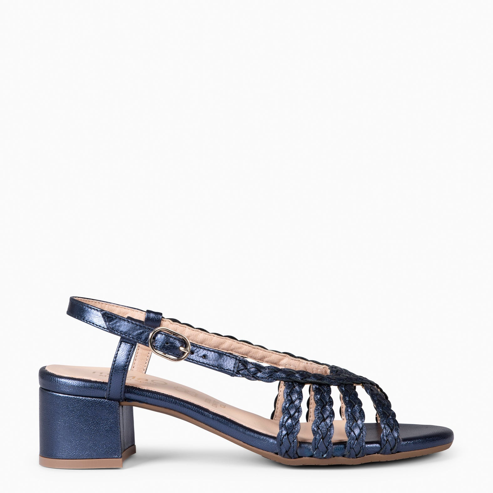 Ce nouveau modèle de sandales de soirée pour femme est fabriqué artisanalement en cuir, c’est la paire parfaite pour être élégante et sophistiquée en toute occasion. Ce modèle comporte quatre tresses en cuir sur le devant du pied, une bride en cuir à boucle réglable avec 5 positions d’ajustement, un talon carré de 5,5 cm ainsi qu’une plateforme de 1 cm. De plus, la semelle intérieure extra rembourrée associée à notre technologie Ultra Confort Gel avec Goutte garantit une expérience d'utilisation exceptionnellement confortable durant de longues heures. Que ce soit pour un mariage, une fête ou tout autre événement spécial, ces sandales de soirée sont le choix idéal pour se démarquer avec style et se sentir à l'aise en toutes circonstances. DETAILS PRODUITSSandales pour femmeHauteur du talon : 5,5 cmMatière extérieure : cuir Matière intérieure : cuirTechnologie de Confort : semelle en cuir respirant Ultra Confort Gel avec Goutte Semelle d’usure extérieure : caoutchouc antidérapantSandales fabriquées en EspagneRef: 25121MARINOMETAL