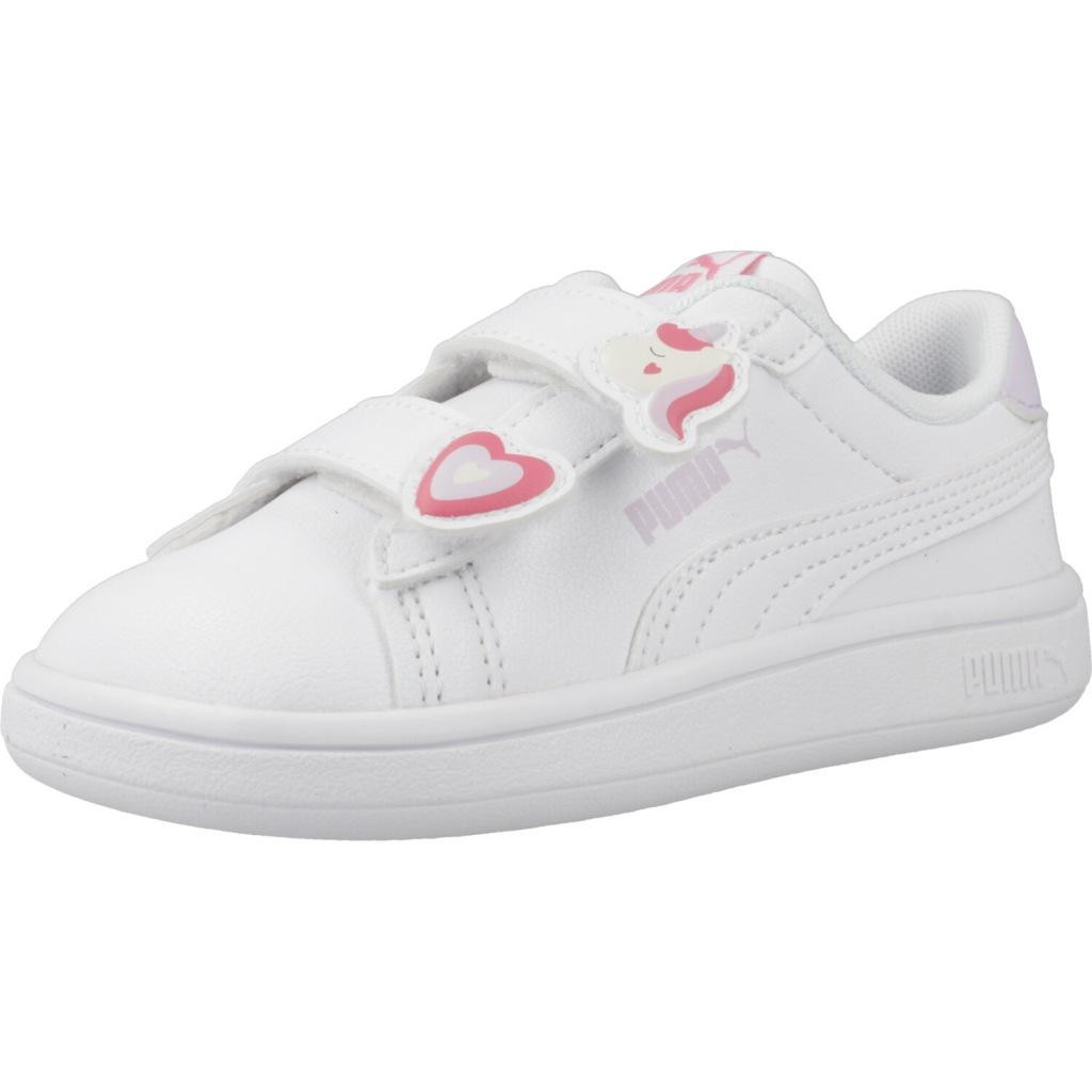Modèle SMASH 3.0 BADGES V IN de marque Puma Blanc Doublure Textile. Extérieur Synthétique. Type de construction: Coincé. Fabrique en Cambodge.