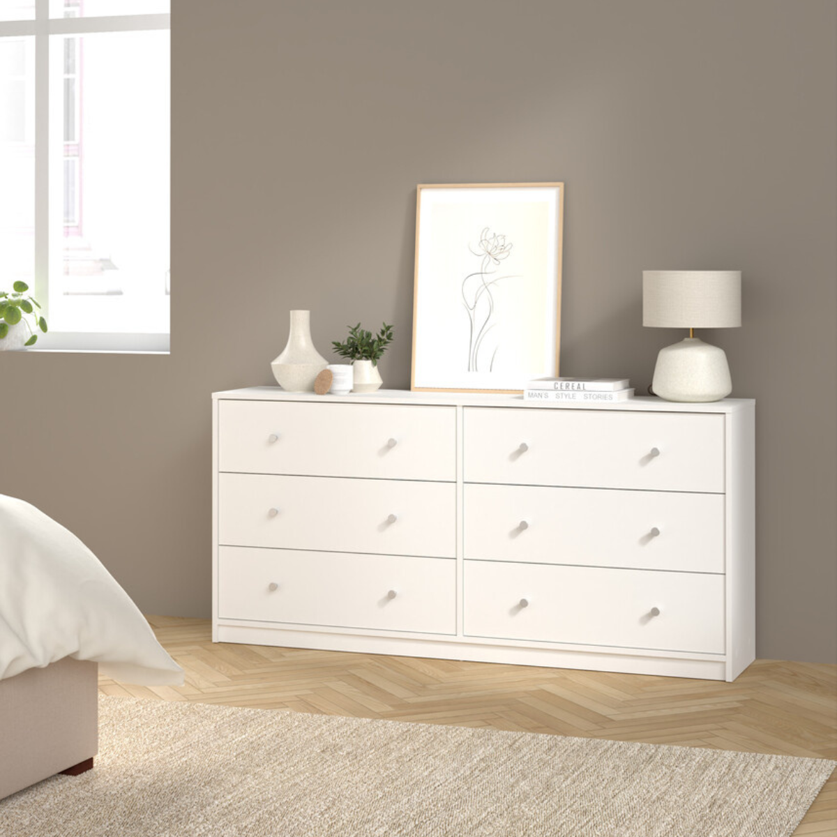 Commode OREGON 2x 3 tiroirs - Décor blanc - L 143 x P 30 x H 68 cm