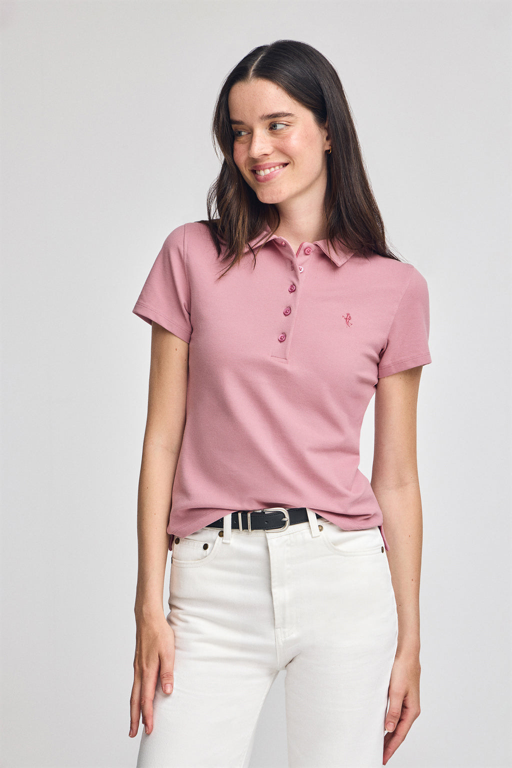 Polo rose pastel à manches courtes en coton avec broderie Rigby Best