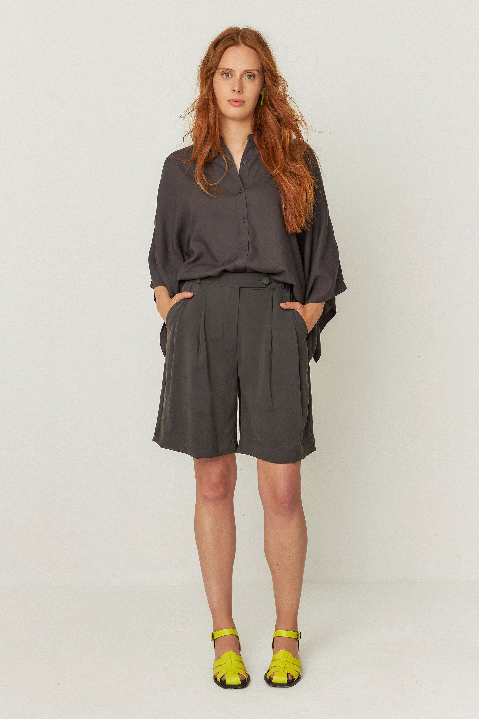 Bermuda avec poches latérales et fermeture zippée et boutonnée. La fermeture zippée est dissimulée par un rabat. L'effet est rehaussé par des poches arrière passepoilées décoratives. 91 % Lenzing™ Ecovero™ - 9 % Polyester. Lavage à froid, cycle délicat. Repassage à basse température. Ne pas blanchir. Ne pas nettoyer à sec. Ne pas sécher en machine. Laver à l'envers. Laver avec des couleurs similaires. Repasser à l'envers. Ne pas repasser l'imprimé.