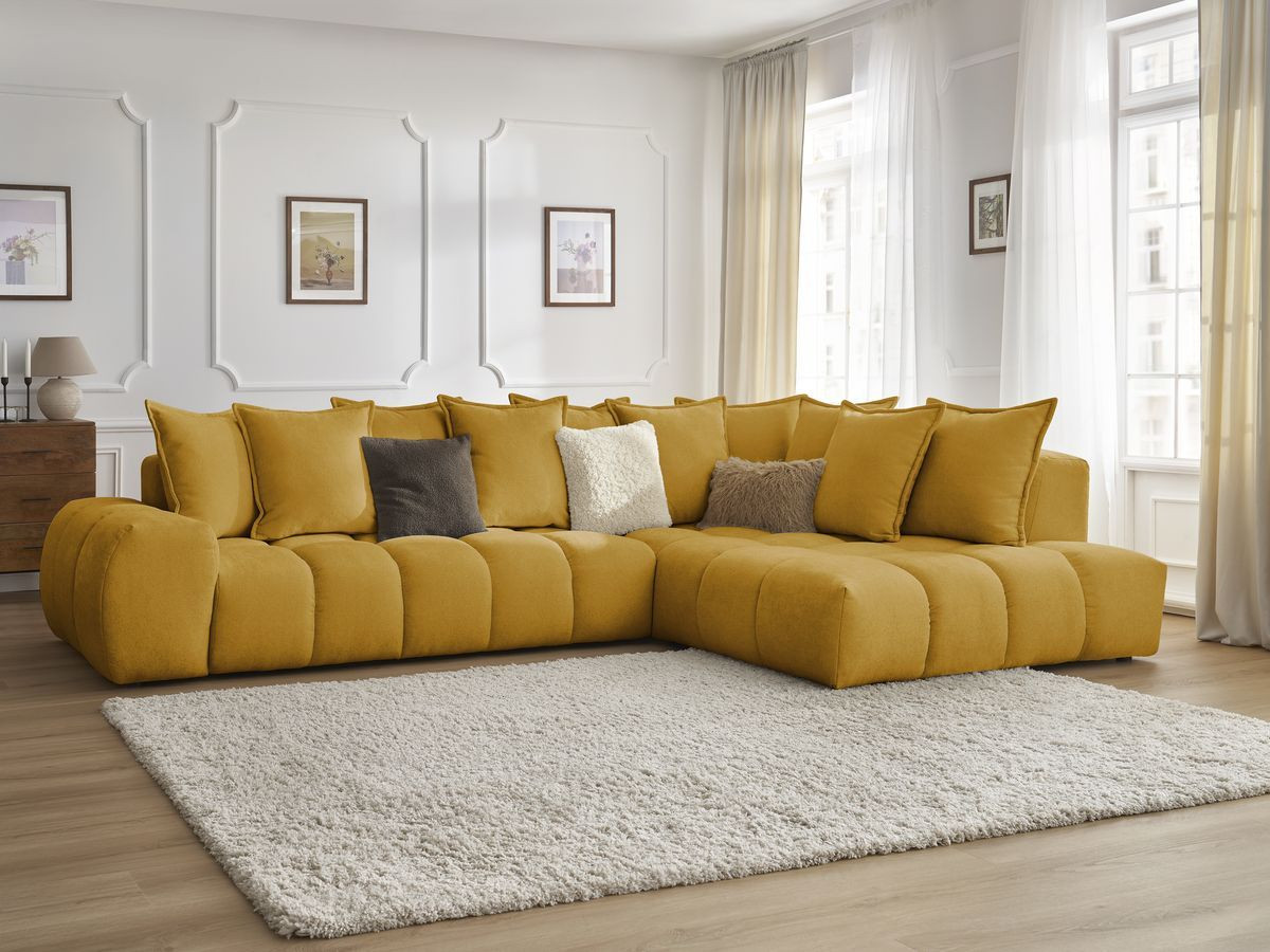 Disponible dans deux revêtements, le canapé d'angle EVEREST a été pensé pour vous offrir tout ce dont vous pouvez rêver dans un canapé. Tout d'abord, ce canapé est un produit particulièrement convivial. En effet, avec ses dimensions généreuses, son accueil moelleux, son capitonnage, son grand nombre de places, ce dernier saura trouver sa place dans votre intérieur et deviendra instantanément votre lieu de vie préféré. De plus, il se distingue aussi comme un espace de repos incomparable. Grâce à sa grande et large méridienne, ce canapé vous offre un support de détente d'une rare élégance et au confort particulièrement moelleux. De quoi vous assurer de disposer d'un petit cocon de douceur et de confort pour vos moments de détente. Enfin, sachez que ce canapé vous propose deux jetés de coussins : une composée de quatre coussins rectangulaires et une autre composée de dix coussins carrés. Ainsi, vous pourrez choisir si vous souhaitez mettre en avant l'aspect détente et cocooning du canapé avec un grand nombre de coussins ou bien, simplement bénéficier d'un petit plus de confort.