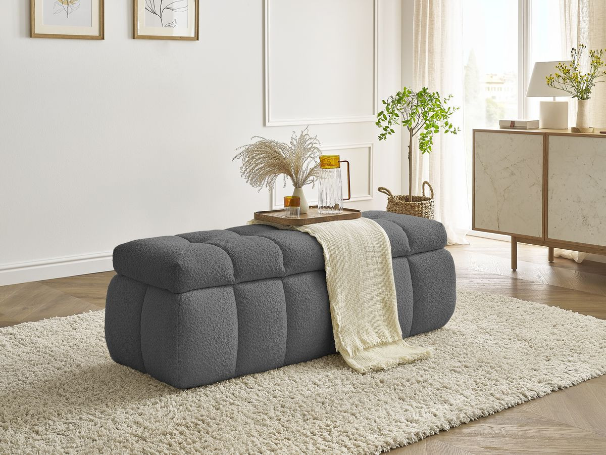 Dissimulé derrière son apparence gracieuse, le Bout de Lit Coffre MONT-BLANC réserve une capacité de rangement généreuse. Il se révèle idéal pour entreposer en toute discrétion vos draps, oreillers supplémentaires, couvertures ou tout autre article. Son design à la fois contemporain et minimaliste apporte une touche d'élégance à votre chambre à coucher. Son tissu bouclette s'harmonise parfaitement avec une variété de styles de décoration.