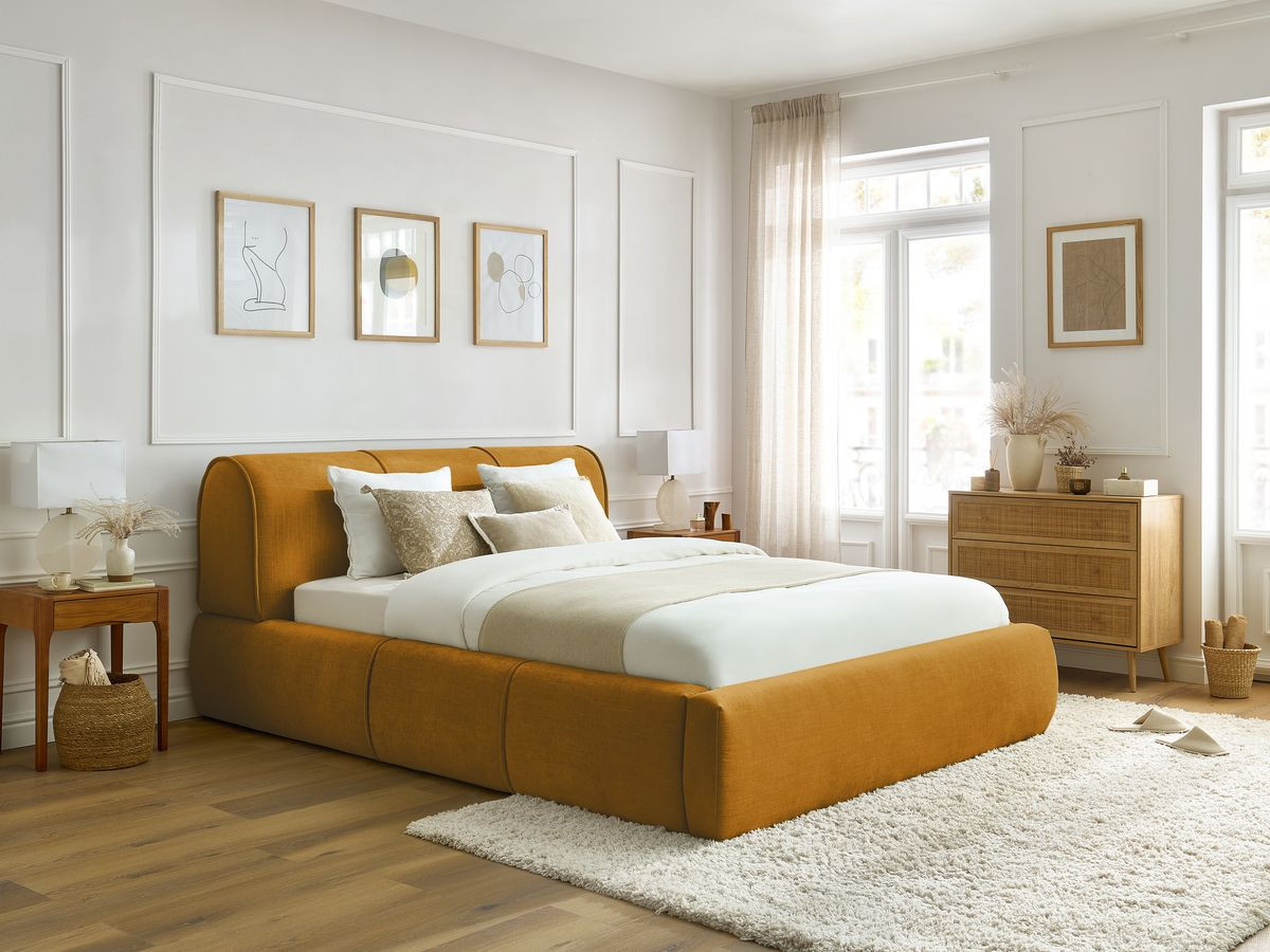 Le lit coffre VERNON vous invite à explorer un nouveau visage du contemporain en mariant formes carrées et finitions arrondies. Ce lit unique ajoute une sophistication à votre chambre, reflétant ainsi l'esprit actuel du design. Transformez votre intérieur en un lieu où l'élégance se conjugue harmonieusement avec la fonctionnalité pour créer un environnement moderne et captivant.