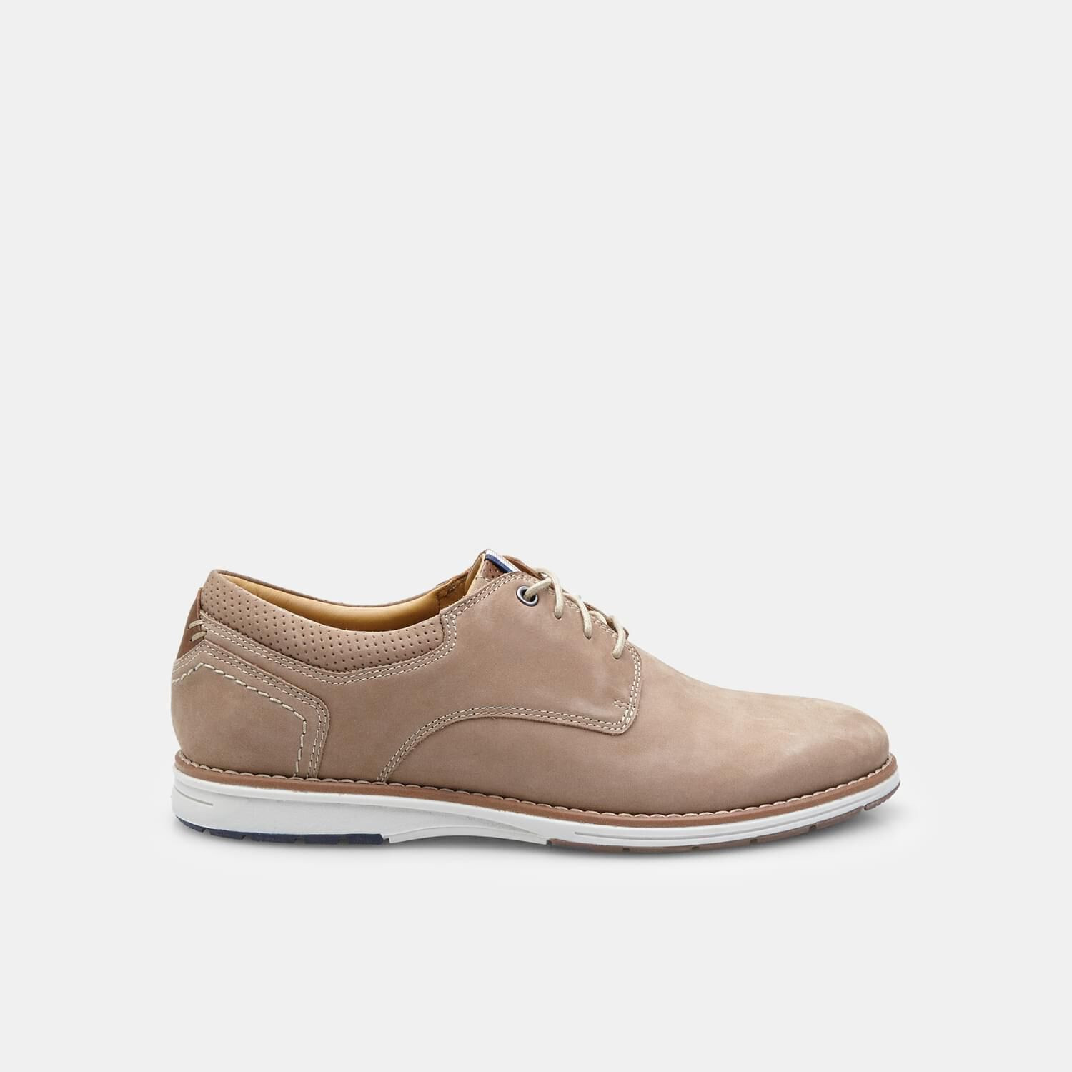 Chaussures en cuir nubuck, avec fermeture à lacets et semelle résistante.