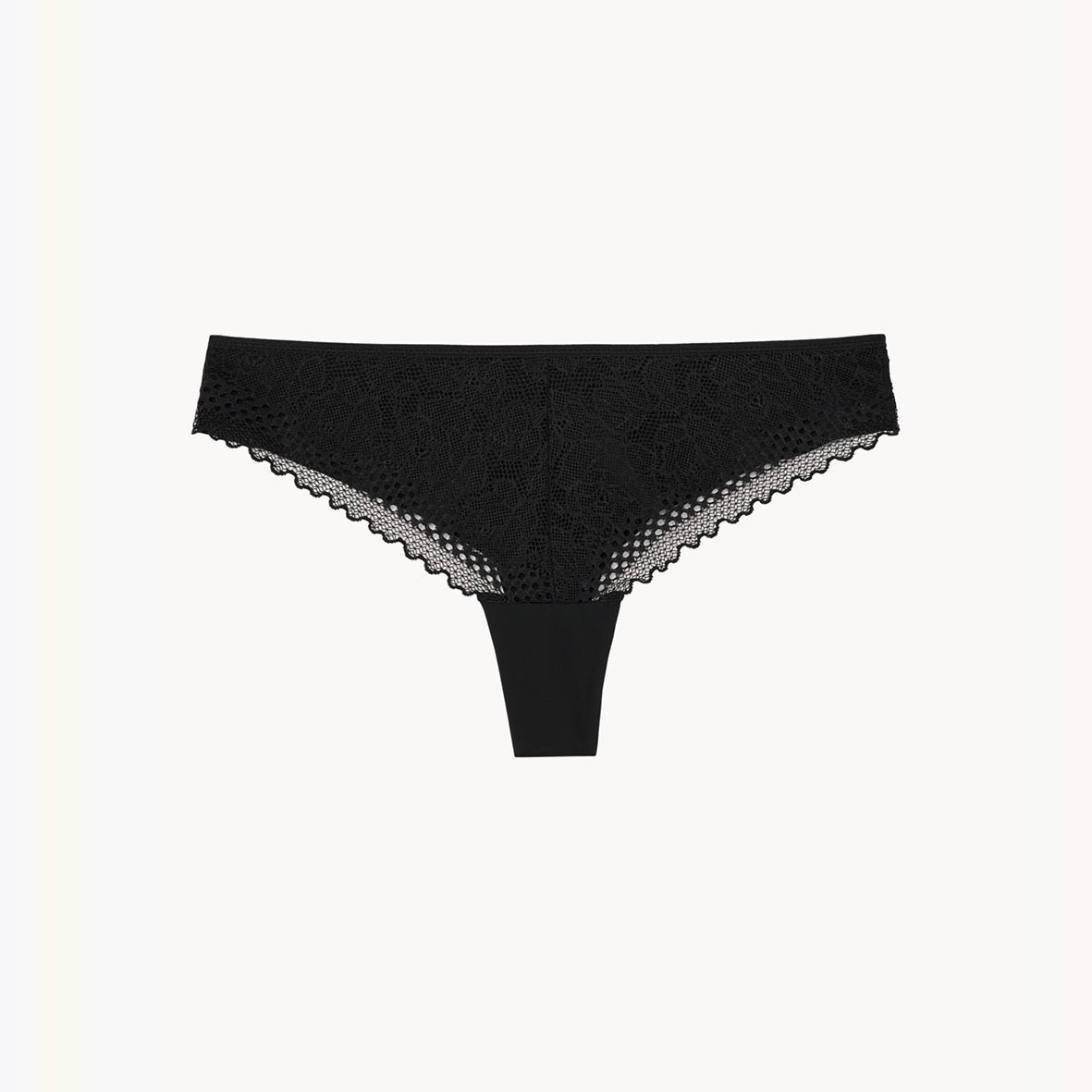 Un tanga à la coupe sensuelle, bien dégagée sur les fesses avec une face avant tout en dentelle.Les finitions cuisses qui contraste sont graphiques et légèrement ajourées.Son dos tout en microfibre douce et opaque, avec des finitions sans coutures, permet une totale invisibilité sous les vêtements.