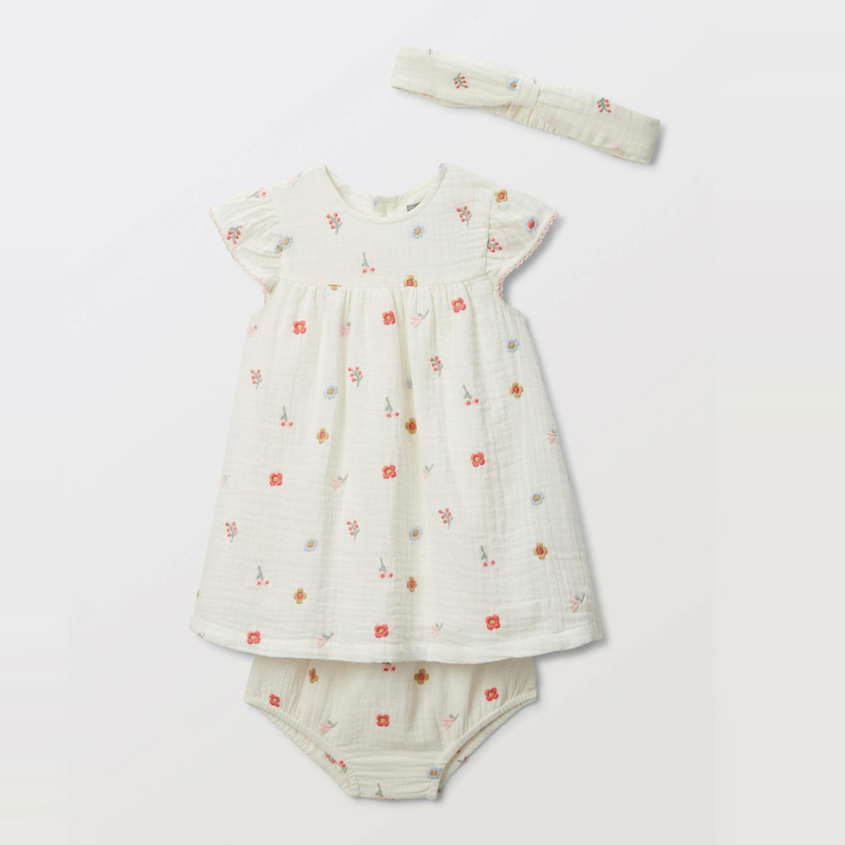Robe brodée à manches volantées en coton BIO GOTS - BOUT'CHOU